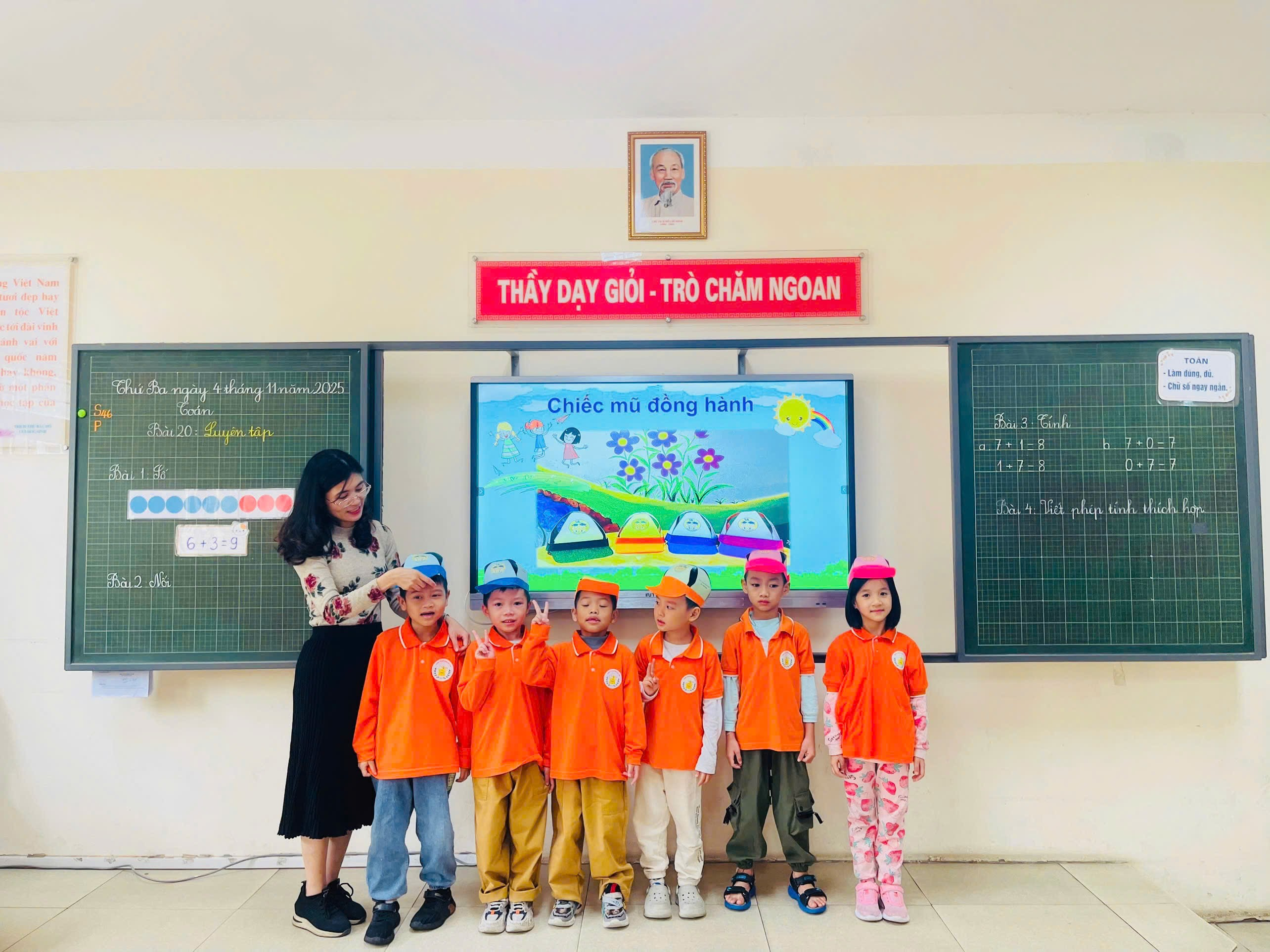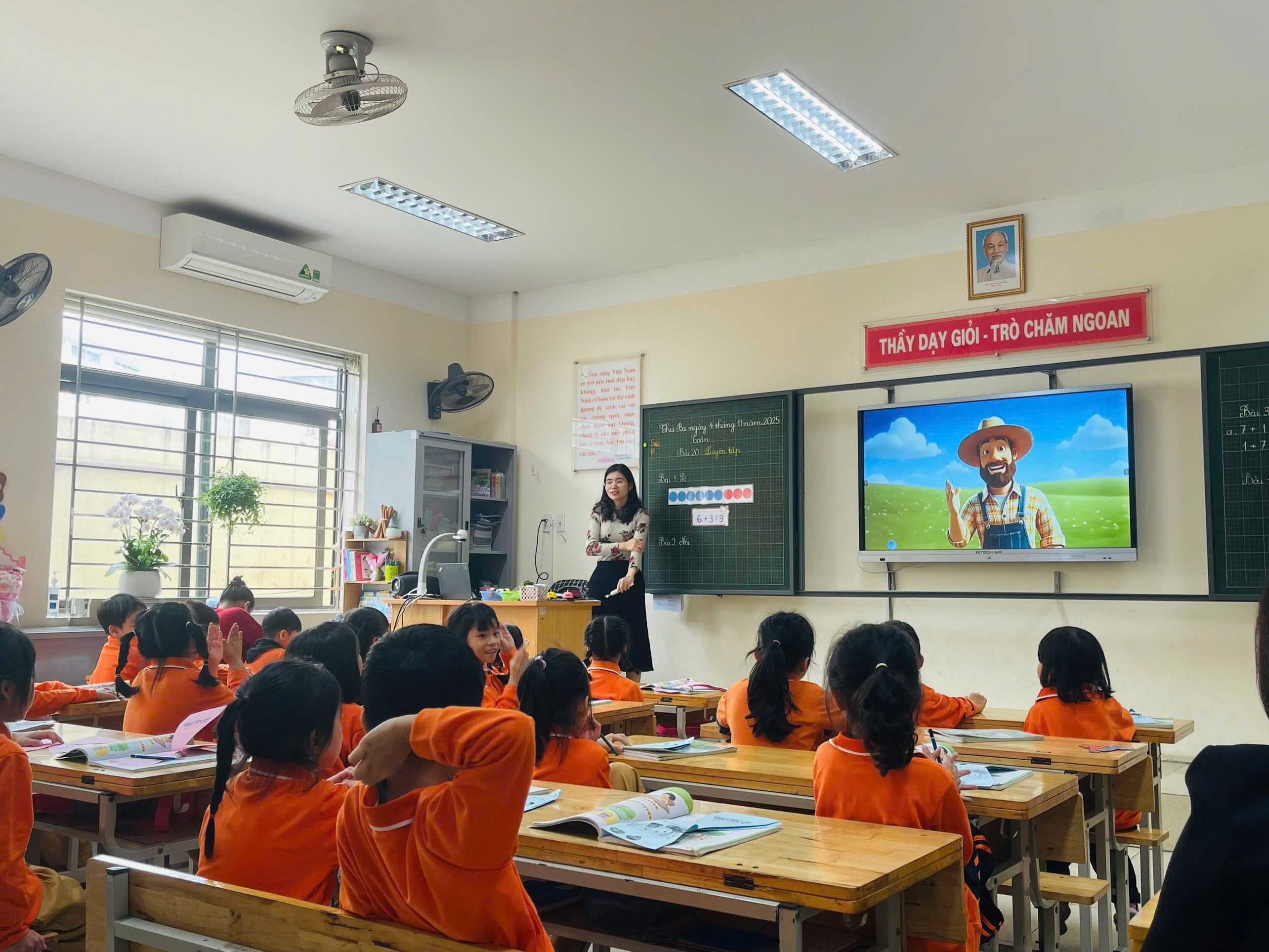 Cô Hồng Thanh đã áp dụng thành công các phương pháp giảng dạy hiện đại, biến một tiết luyện tập khô khan trở thành một trải nghiệm vui vẻ và dễ hiểu cho các em học sinh. Cô đã sử dụng nhiều đồ dùng trực quan và trò chơi học tập để củng cố kiến thức về phép cộng trong phạm vi 10. Thay vì chỉ tập trung vào đáp án, cô Thanh đã khéo léo hướng dẫn các em tự trình bày cách giải quyết vấn đề và giải thích tư duy của mình. Điều này giúp các em lớp 1 hình thành kỹ năng lập luận logic ngay từ bước đầu. Bên cạnh đó, lớp học diễn ra trong không khí thoải mái, gần gũi, nơi mỗi em học sinh đều cảm thấy tự tin khi giơ tay phát biểu và đặt câu hỏi.