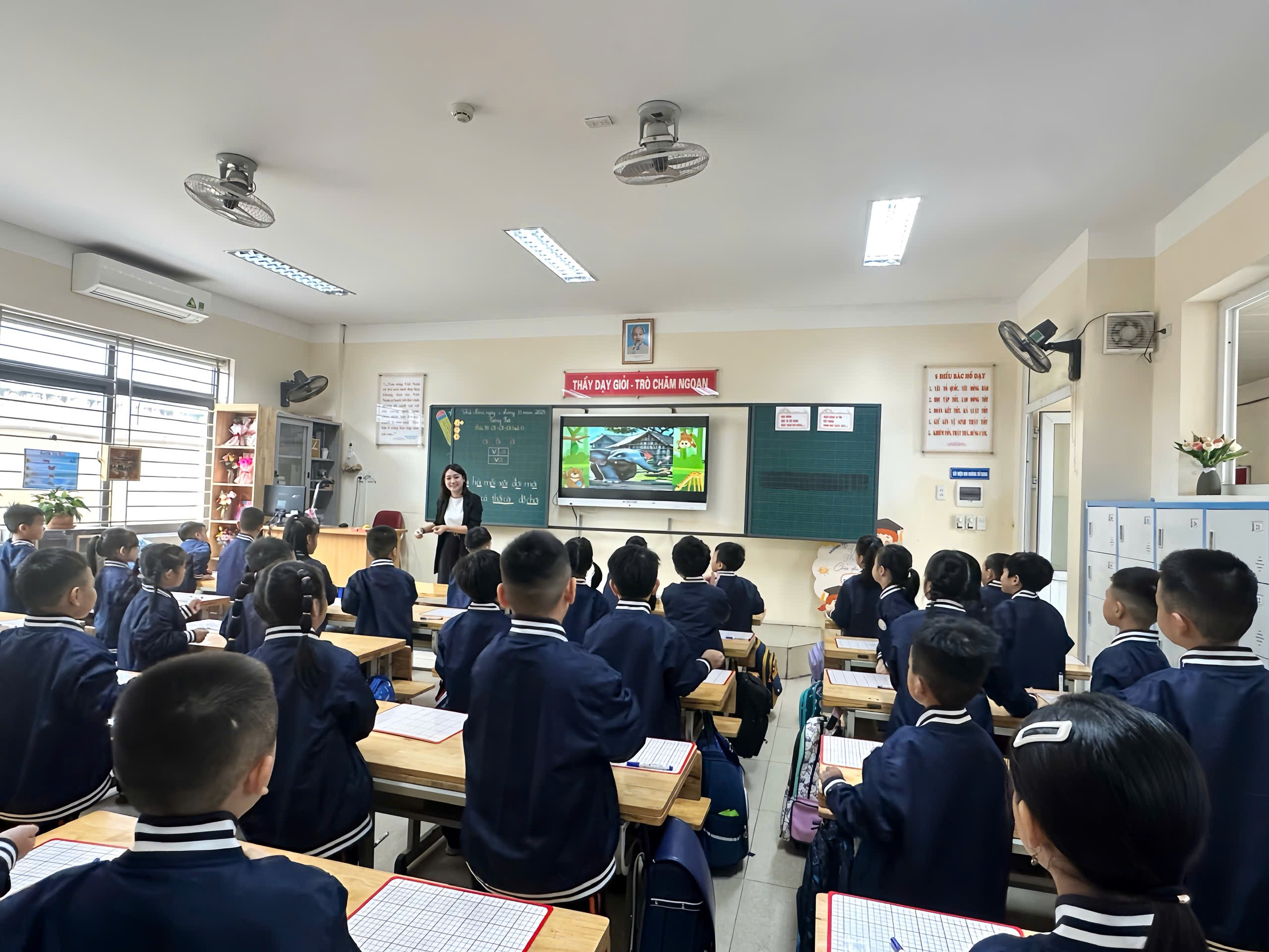 Kết thúc đợt Hội giảng của khối 1, hành lang Trường Tiểu học Hoàng Hoa Thám vang vọng tiếng cười và sự tập trung cao độ từ lớp học của cô giáo Trần Hà Phương. Cô Hà Phương đã mang đến một tiết Tiếng Việt Lớp 1 không chỉ đạt chuẩn mực chuyên môn mà còn tràn đầy niềm hứng khởi, đúng như tinh thần "Vui tươi - Bổ ích - Lý thú"!