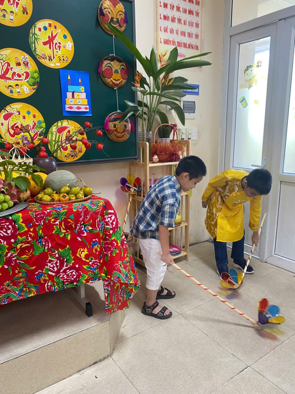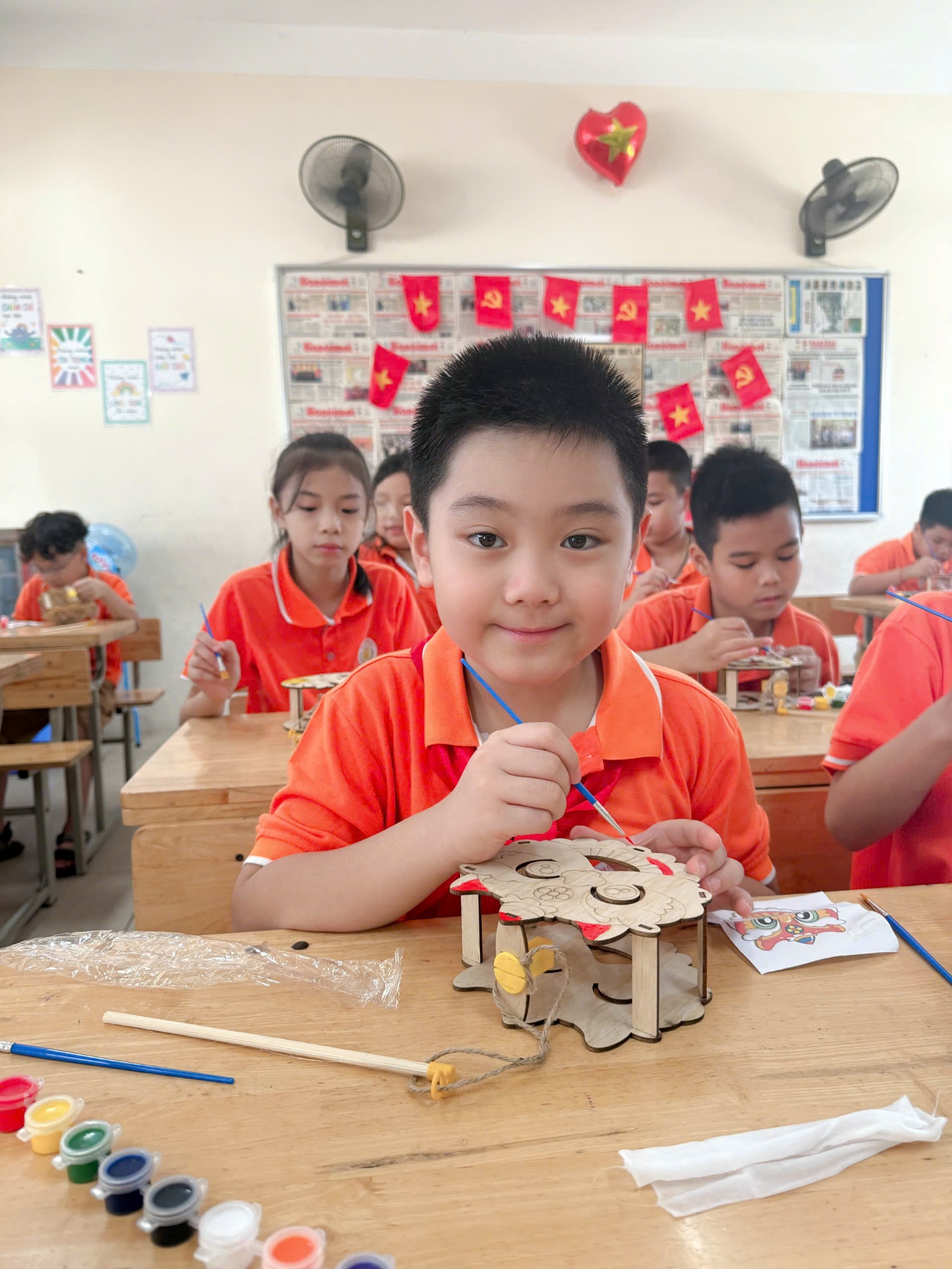 Không chỉ trang trí lớp học, các em học sinh khối 4 còn cùng nhau tham gia nhiều hoạt động vui nhộn và ý nghĩa: làm đèn ông sao, tô mặt nạ giấy, vẽ tranh chủ đề Trung thu, và đặc biệt là phần thi “Tài năng nhí” với những tiết mục văn nghệ rộn ràng tiếng hát, tiếng cười. Tiếng trống tùng dinh, tiếng nhạc múa lân, những điệu múa dẻo dai, những giọng ca trong trẻo đã làm lớp học bừng sáng sắc màu của niềm vui và tuổi thơ.
