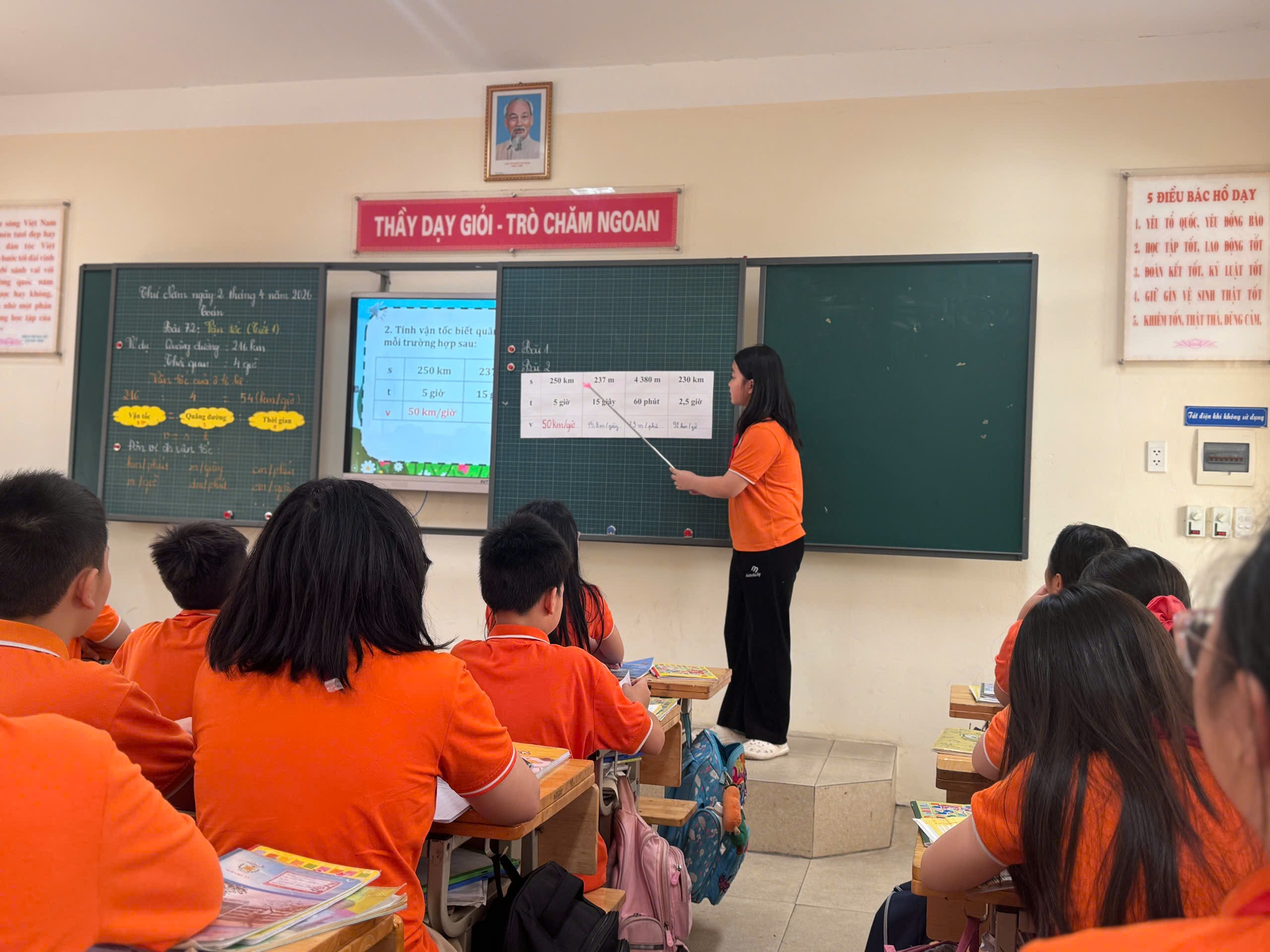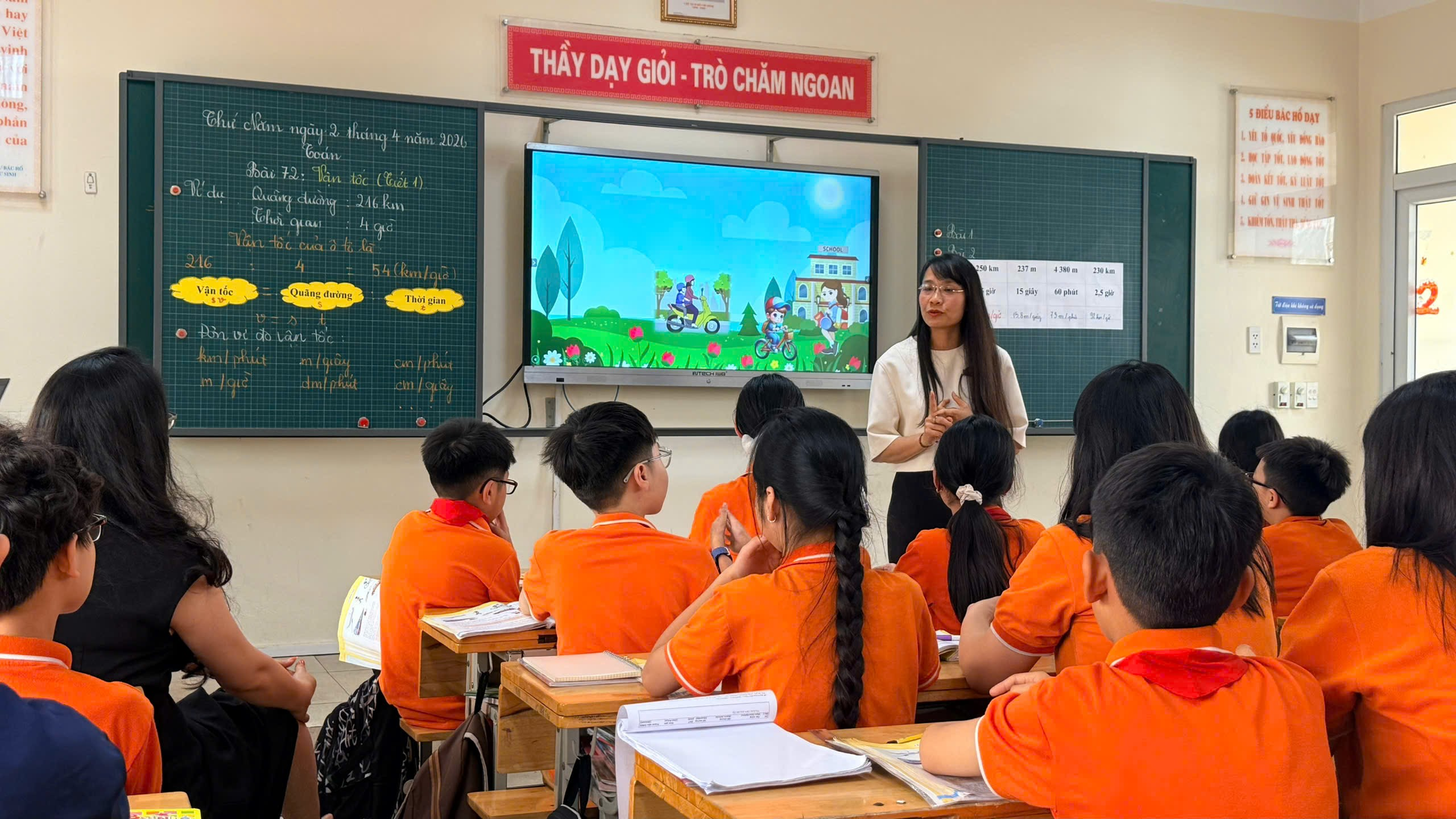 Trong suốt tiết học, cô đã vận dụng linh hoạt các phương pháp dạy học tích cực, lấy học sinh làm trung tâm. Học sinh được tham gia vào nhiều hoạt động đa dạng như thảo luận nhóm, giải quyết tình huống, trình bày ý kiến cá nhân… Qua đó, các em không chỉ nắm vững kiến thức về công thức tính vận tốc, quãng đường, thời gian mà còn rèn luyện được kỹ năng tư duy logic, hợp tác và giao tiếp.