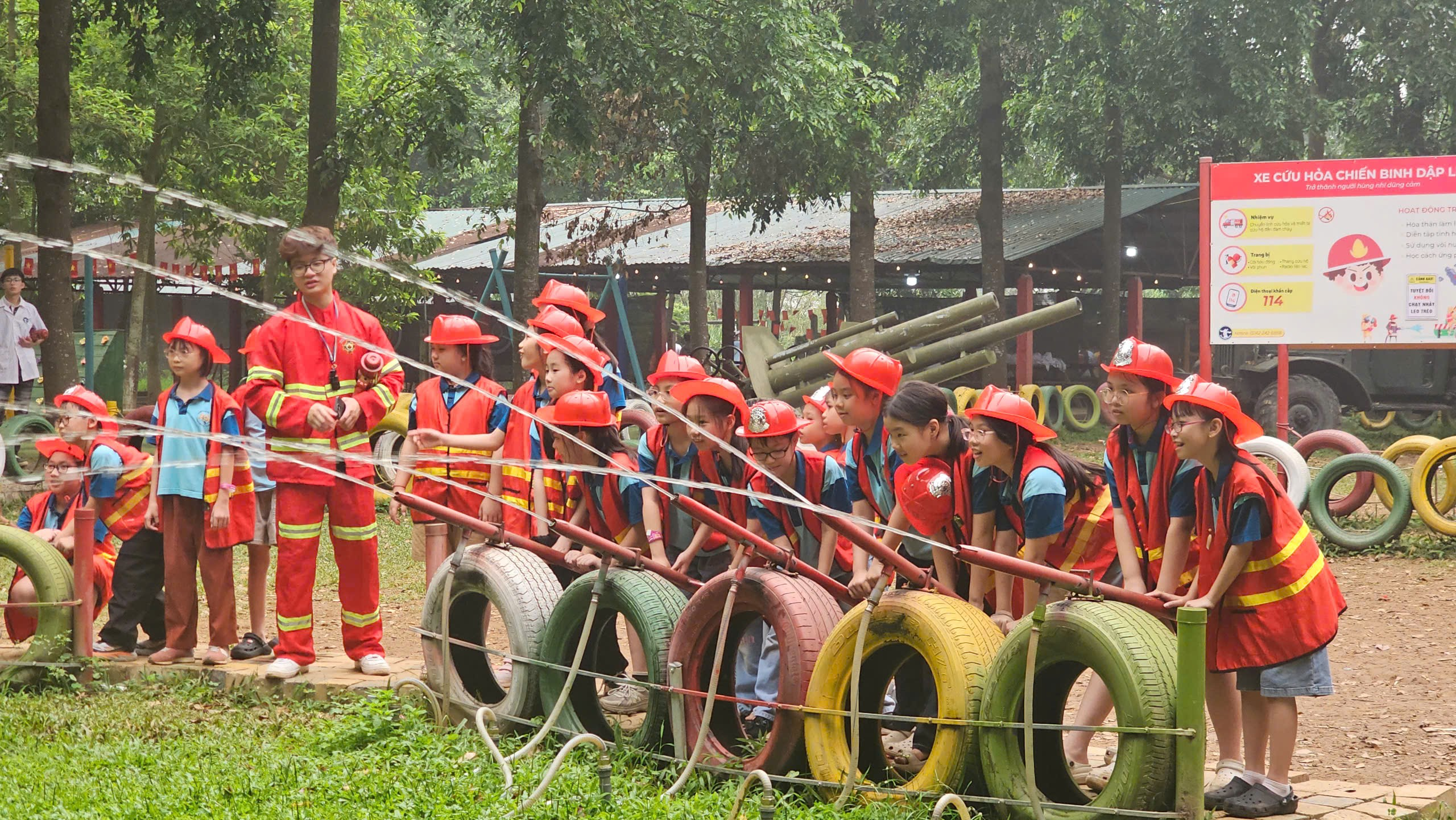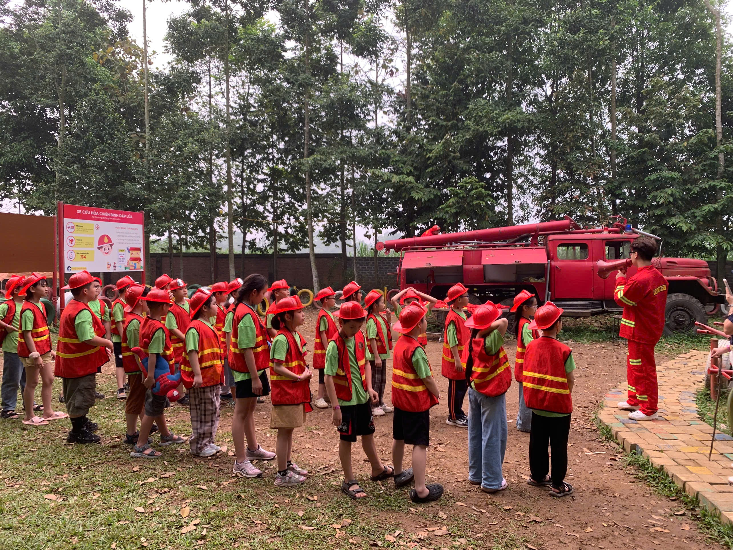Không dừng lại ở đó, các con còn được hóa thân vào những vai trò đầy trách nhiệm: lính cứu hỏa dũng cảm, nhân viên cấp cứu nhanh nhẹn, chiến sĩ công binh kiên cường. Qua từng trải nghiệm, các em được rèn luyện kỹ năng xử lý tình huống, nâng cao ý thức tự bảo vệ bản thân trong cuộc sống.