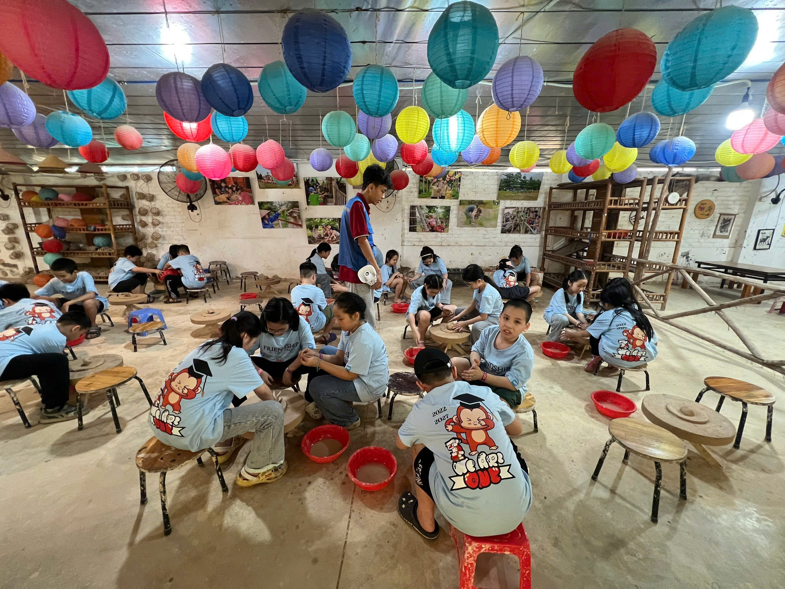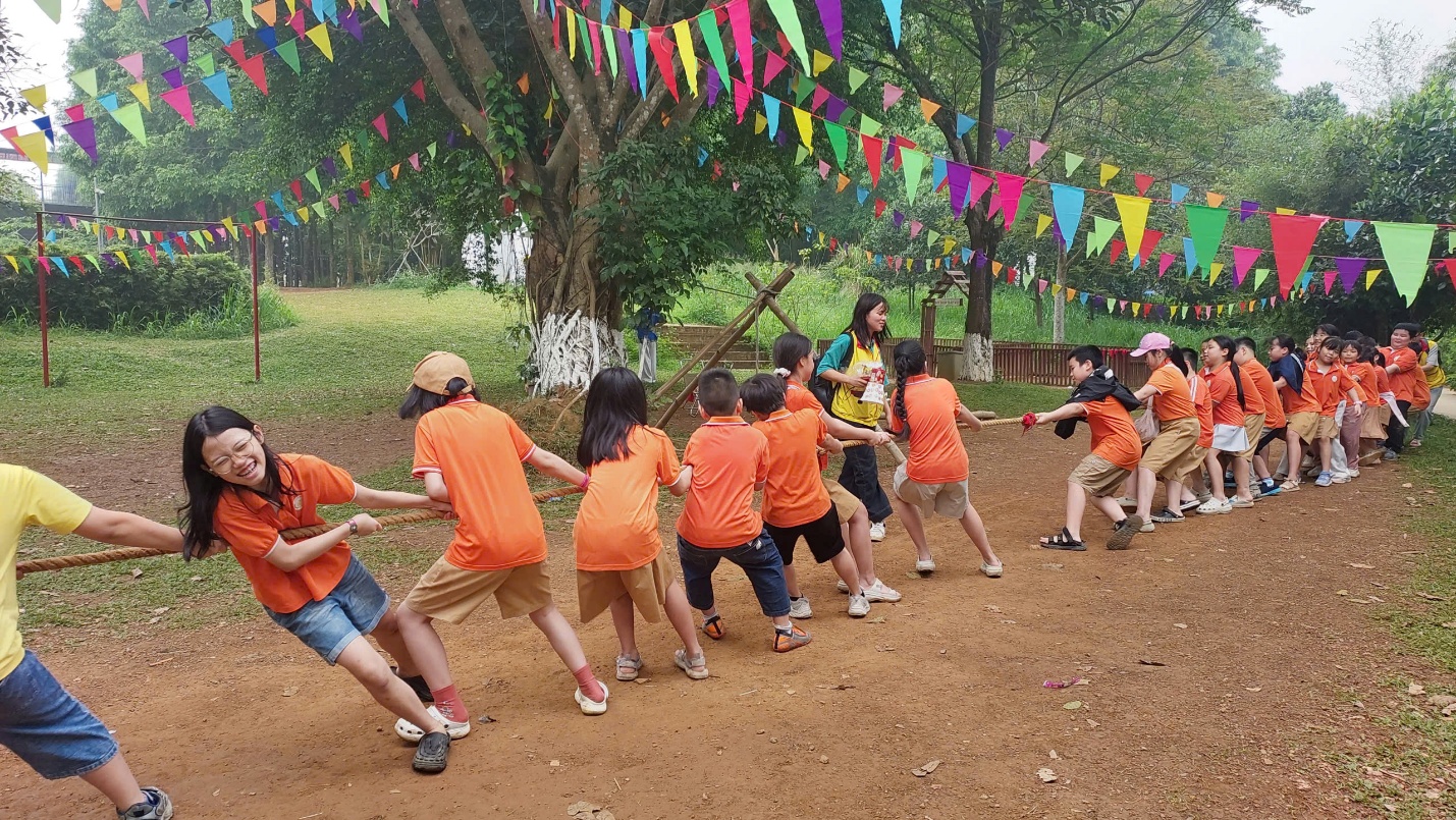 Rời xa nhịp sống quen thuộc, các con được đắm mình trong không gian xanh mát, trong lành và bắt đầu hành trình khám phá bằng những hoạt động đậm sắc màu làng quê. Những trò chơi dân gian như bịt mắt bắt vịt, bắt cá, nấu cơm niêu, nướng khoai, làm bánh trôi… không chỉ mang lại tiếng cười giòn giã mà còn giúp các con cảm nhận rõ nét vẻ đẹp mộc mạc, giản dị của cuộc sống nông thôn Việt Nam.