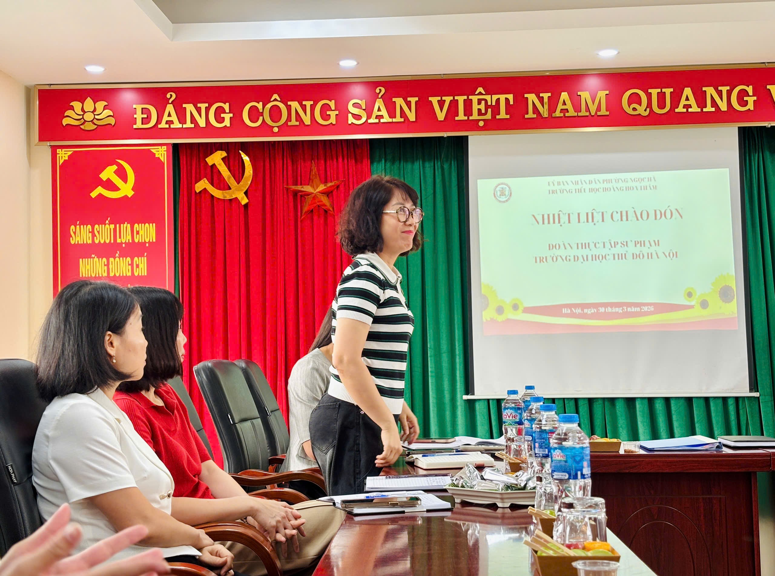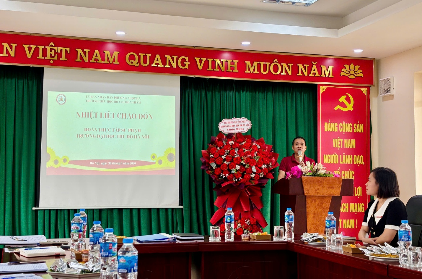Sáng ngày 30 tháng 3 năm 2026, trường Tiểu học Hoàng Hoa Thám đã tổ chức buổi gặp mặt và ra mắt đoàn giáo sinh thực tập năm thứ 3 đến từ khoa Sư phạm trường Đại học Thủ đô Hà Nội. Đây là hoạt động thường niên có ý nghĩa quan trọng nhằm tạo điều kiện cho sinh viên sư phạm được trải nghiệm thực tế, rèn luyện kỹ năng nghề nghiệp và tiếp cận môi trường giáo dục tiểu học.