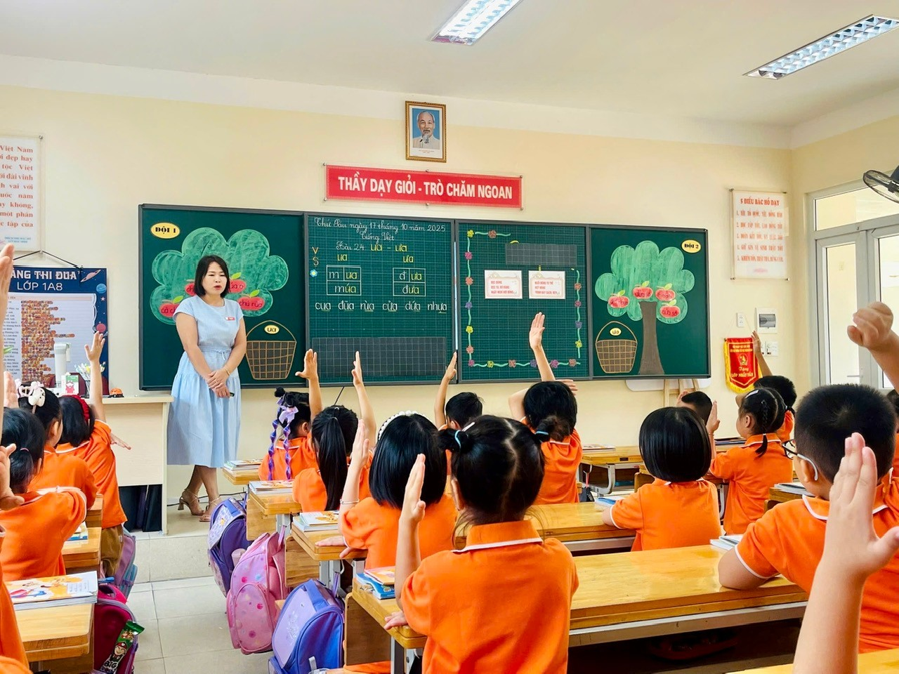 Trong tiết học Tiếng Việt, cô giáo Đỗ Thị Nguyệt đã vận dụng ứng dụng AI hỗ trợ trong phần luyện đọc câu giúp học sinh luyện đọc, luyện nói chuẩn âm, đúng nhịp. Bài học trở nên sinh động hơn khi học sinh được tương tác với nhân vật ảo trên màn hình, cùng tham gia trò chơi “Hái táo” để tìm tiếng chứa âm ua - ưa. Phương pháp dạy học tích cực kết hợp công nghệ hiện đại giúp học sinh lớp 1A8 hứng thú và tự tin hơn trong luyện đọc, luyện viết.