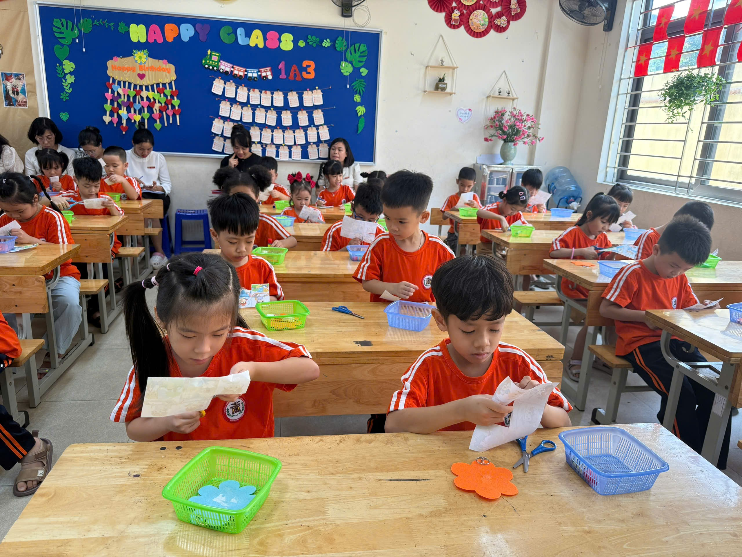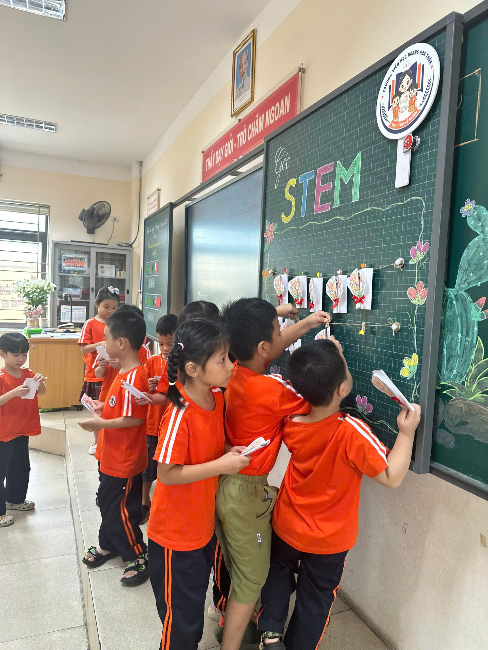 Bên cạnh đó, các bạn nhỏ còn được tự tay thiết kế những Bông hoa nhắc việc đầy màu sắc. Tiết học trở nên sinh động, gần gũi và giúp học sinh rèn luyện kỹ năng sống, cảm xúc và giá trị đạo đức thông qua trải nghiệm STEM.