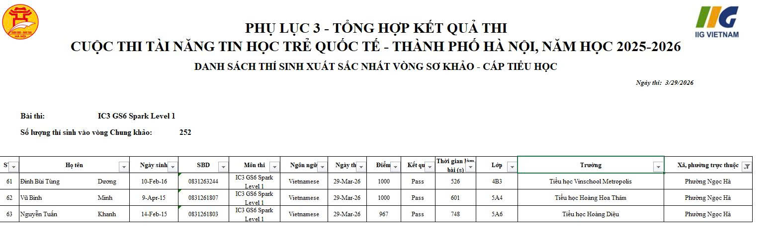 Mới đây, em Vũ Bình Minh đã xuất sắc lọt vào vòng chung khảo cấp thành phố cuộc thi Tin học trẻ quốc tế, ghi dấu một bước tiến quan trọng trên hành trình chinh phục tri thức và công nghệ. Thành tích ấy không chỉ là niềm vui của riêng em và tập thể lớp 5A4, mà còn lan tỏa niềm tự hào tới toàn thể cán bộ, giáo viên và học sinh nhà trường.