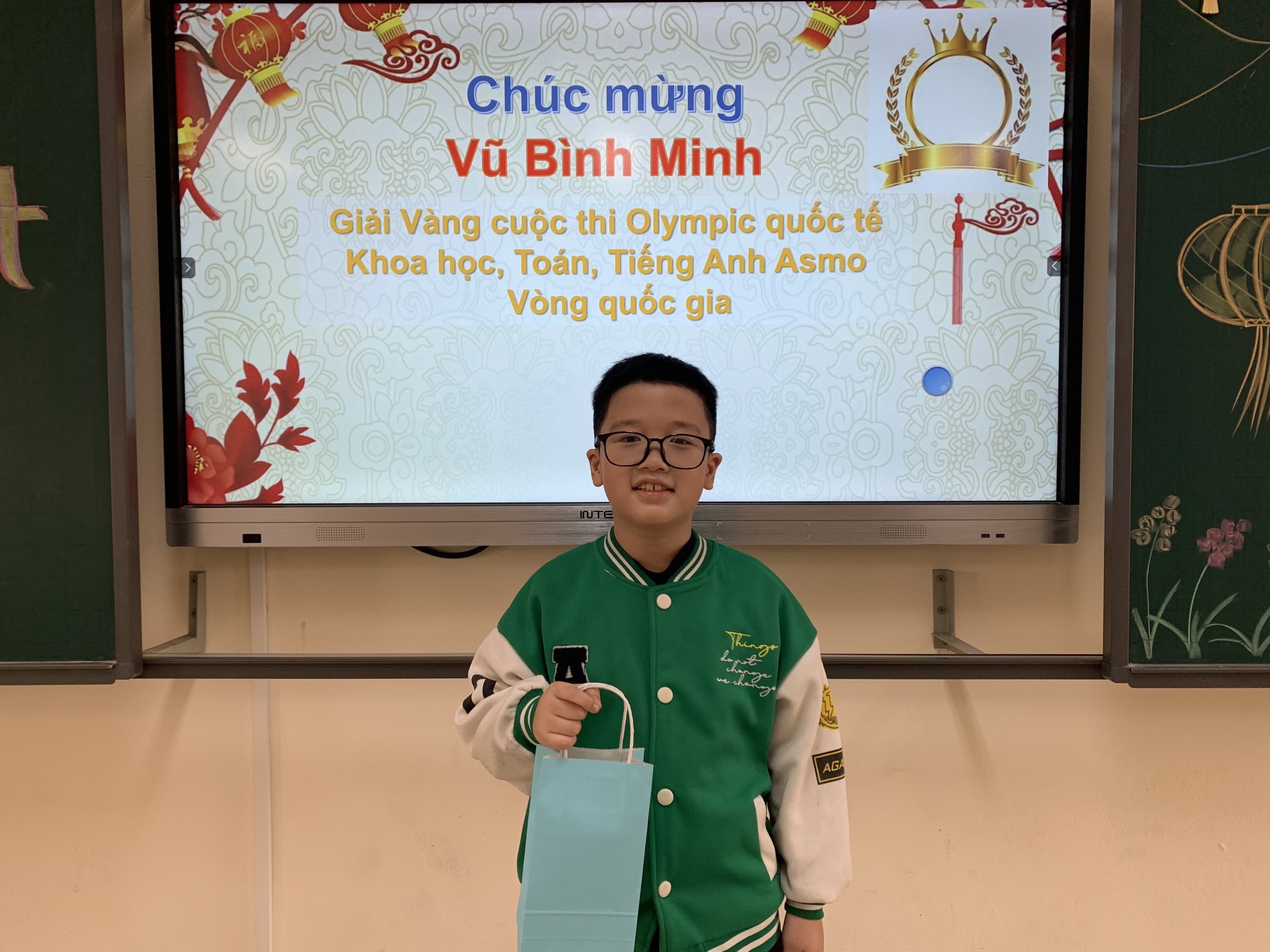 Nhà trường, thầy cô và các bạn học sinh xin gửi tới em Vũ Bình Minh lời chúc mừng nồng nhiệt và tự hào nhất!