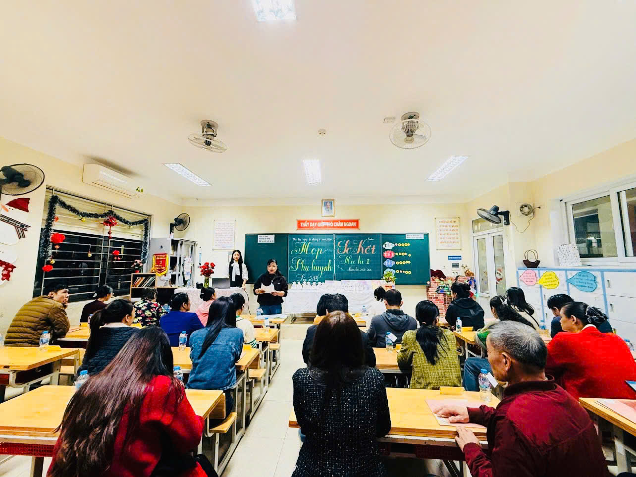 Họp phụ huynh học sinh là cuộc họp có ý nghĩa rất quan trọng. Đây là dịp để cô giáo và phụ huynh được ngồi lại gần nhau, trò chuyện, trao đổi trực tiếp về tình hình học tập của các em học sinh, đồng thời giáo viên thông báo kết quả học tập cuối học kì I, triển khai kế hoạch học tập, phương hướng, nhiệm vụ trong học kì II tới phụ huynh học sinh. Đây cũng là lúc giáo viên lắng nghe những ý kiến chia sẻ, những tâm tư, tình cảm của các bậc phụ huynh, giải đáp thắc mắc của phụ huynh về việc học tập của con em mình tại nhà trường.