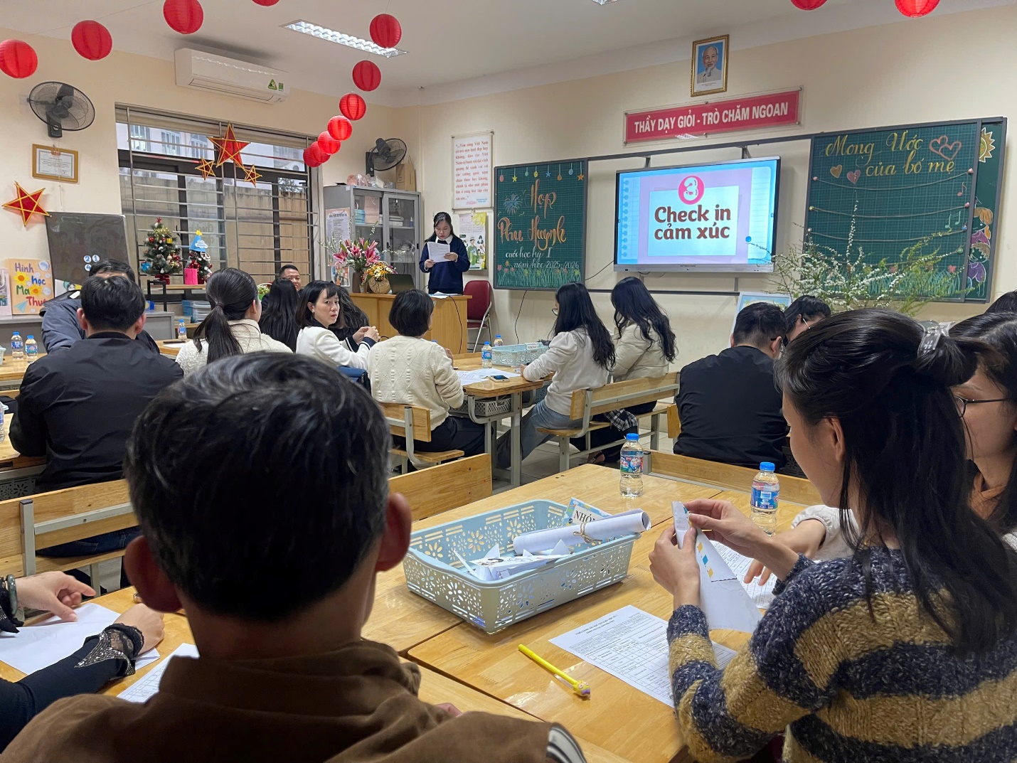 Một số hình ảnh của cuộc họp phụ huynh cuối học kì 1 tại các lớp khối 1