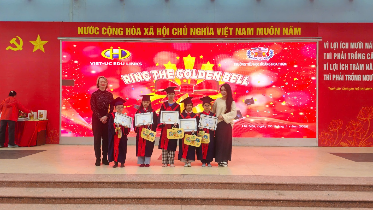 Sau nhiều câu hỏi, bạn An Hoàng Yến học sinh lớp 4A6 đã xuất sắc vượt qua các thí sinh, trả lời đúng nhiều câu hỏi giành được giải Quán quân. Bên cạnh đó nhiều bạn đạt giải Nhì và giải Ba cuộc thi Rung chuông vàng Tiếng Anh dành cho khối lớp 4.