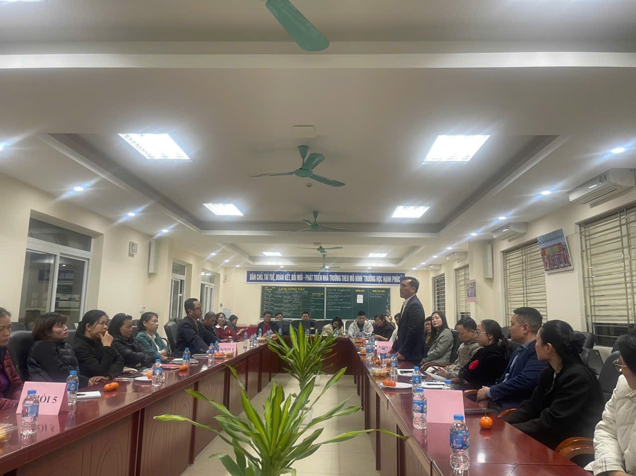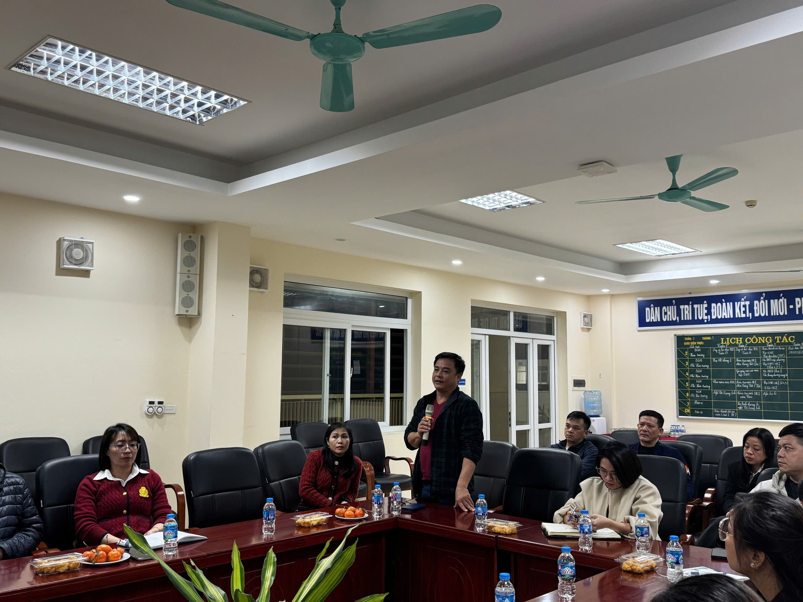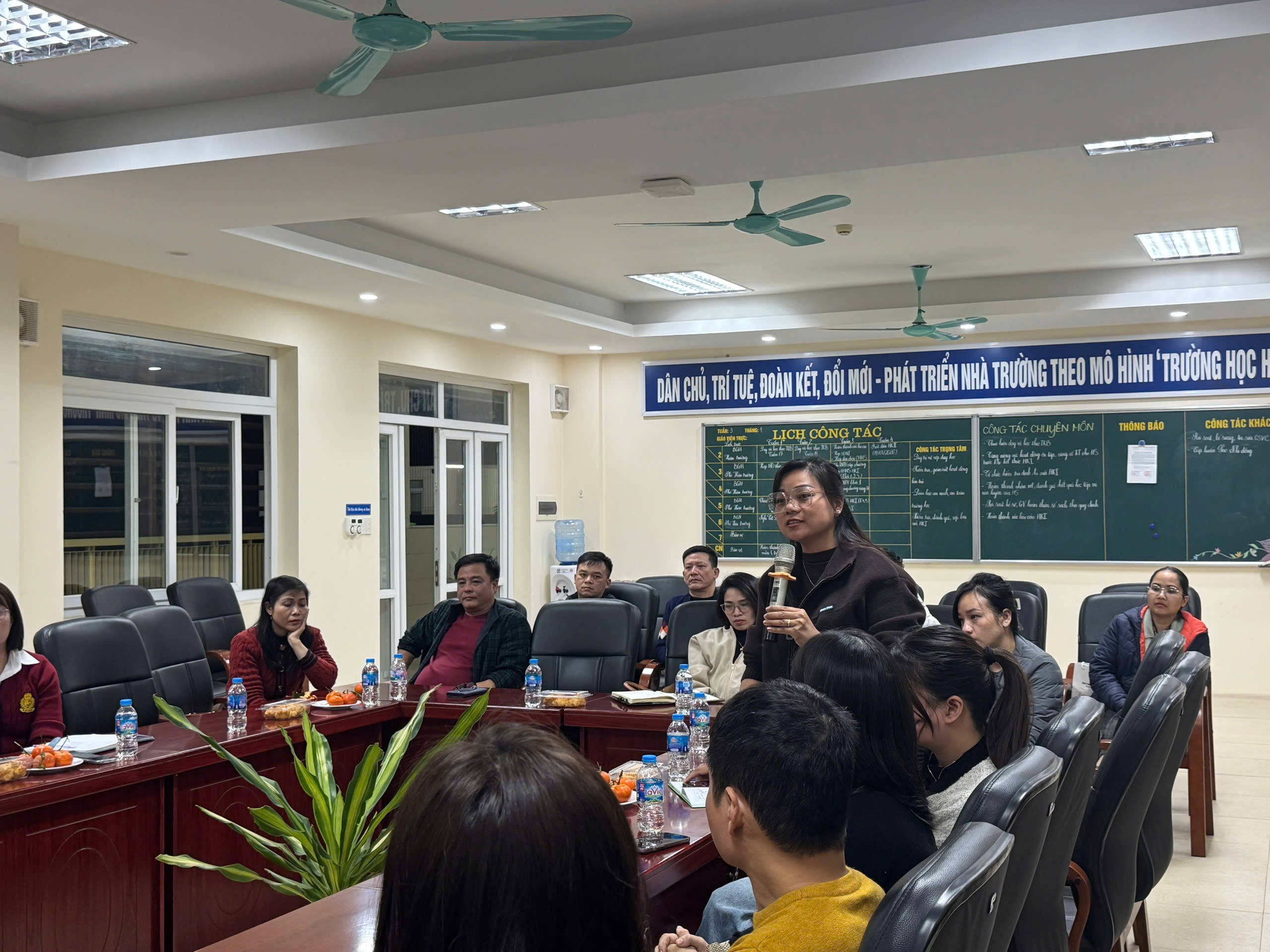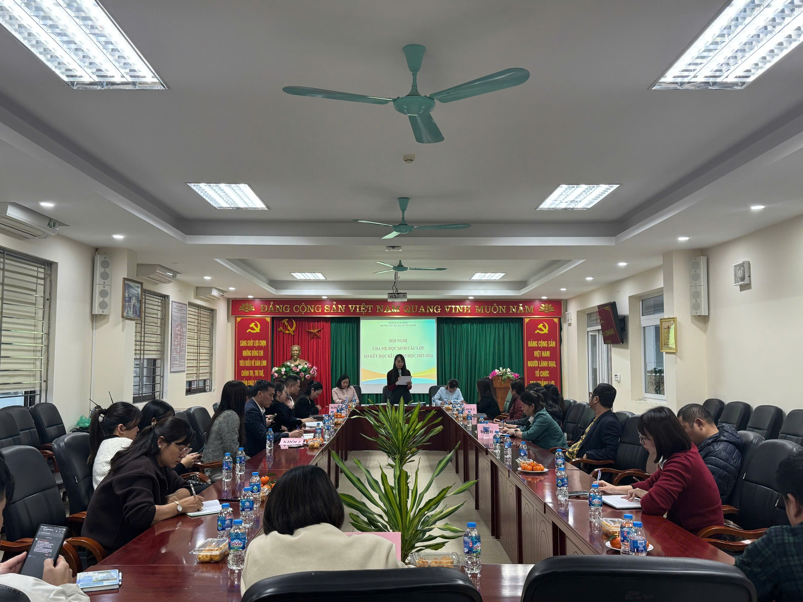 Tại buổi họp, Ban Giám hiệu nhà trường đã trình bày báo cáo tổng kết hoạt động giáo dục học kì I, nêu rõ những kết quả nổi bật trong công tác dạy học, giáo dục đạo đức, rèn luyện kỹ năng, xây dựng môi trường học tập an toàn, thân thiện. Bên cạnh những thành tích đạt được, nhà trường cũng thẳng thắn chỉ ra một số khó khăn, hạn chế trong quá trình triển khai nhiệm vụ, đồng thời đề xuất các giải pháp nhằm nâng cao chất lượng giáo dục trong thời gian tới.