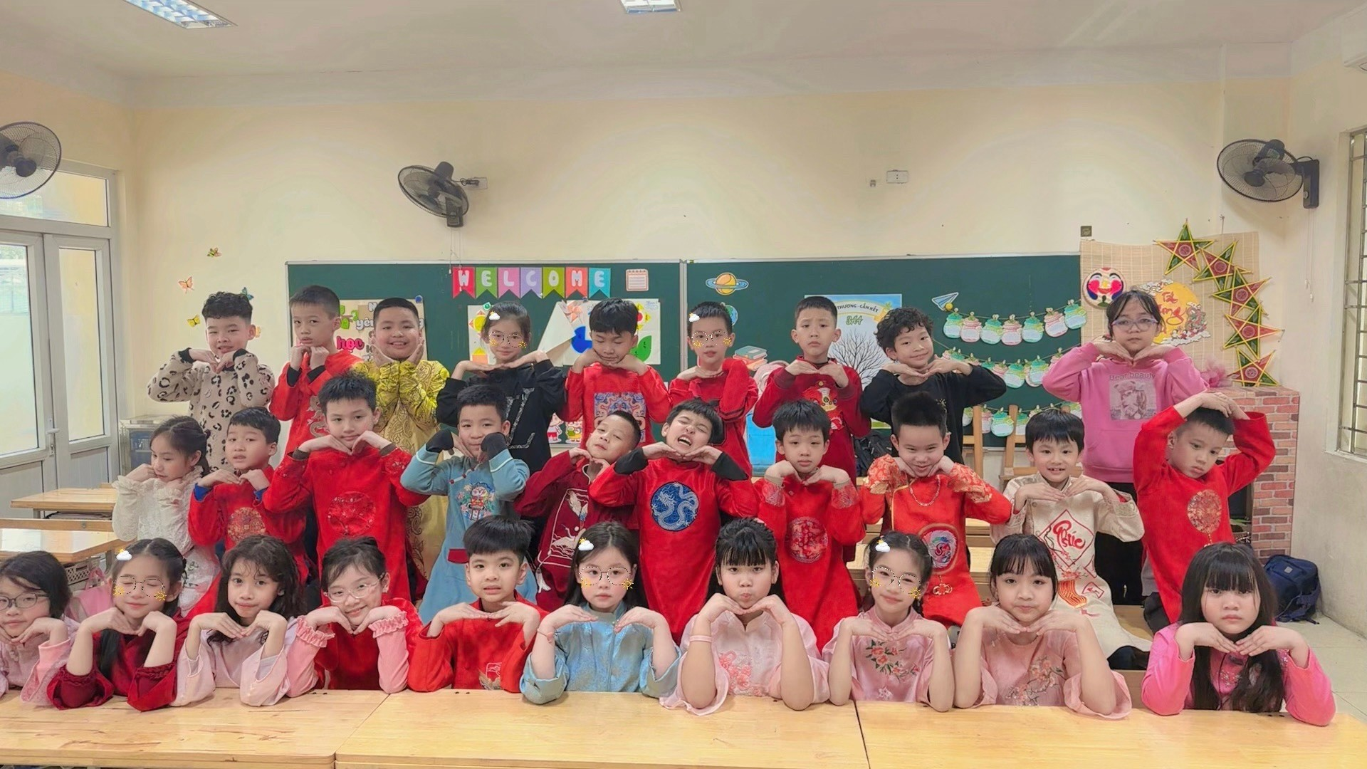 Sau kỳ nghỉ tết kéo dài, các em học sinh khối 3 thân yêu háo hức đến trường từ rất sớm trong tiết trời Hà Nội se se lạnh, gió xuân dịu dàng, nụ đào tươi thắm khoe sắc đón xuân sang. Xúng xính những bộ áo dài rực rỡ sắc màu, bạn gái bạn trai thi nhau kể chuyện, nét mặt trẻ thơ thêm phần đáng yêu, đượm hương xuân.