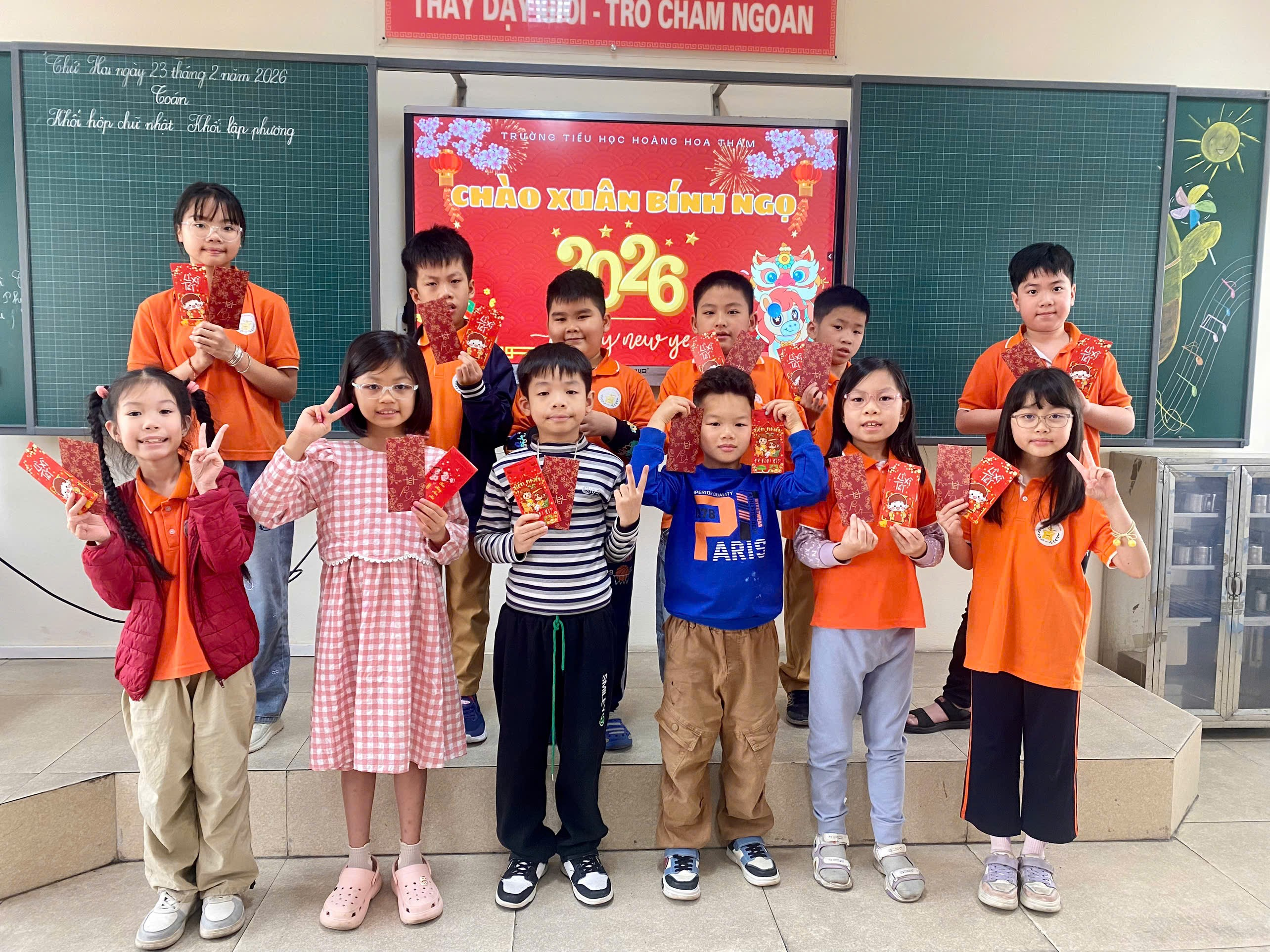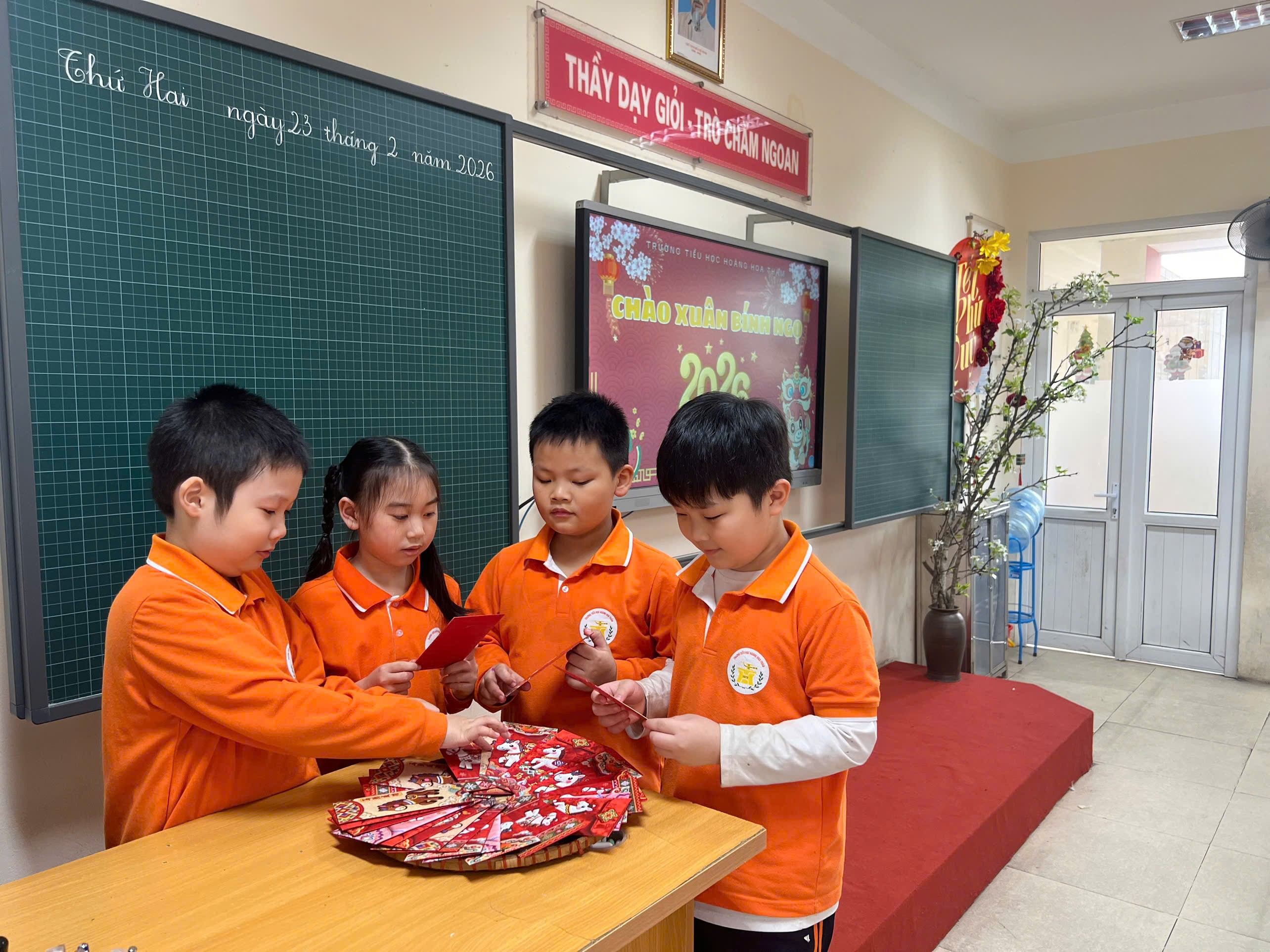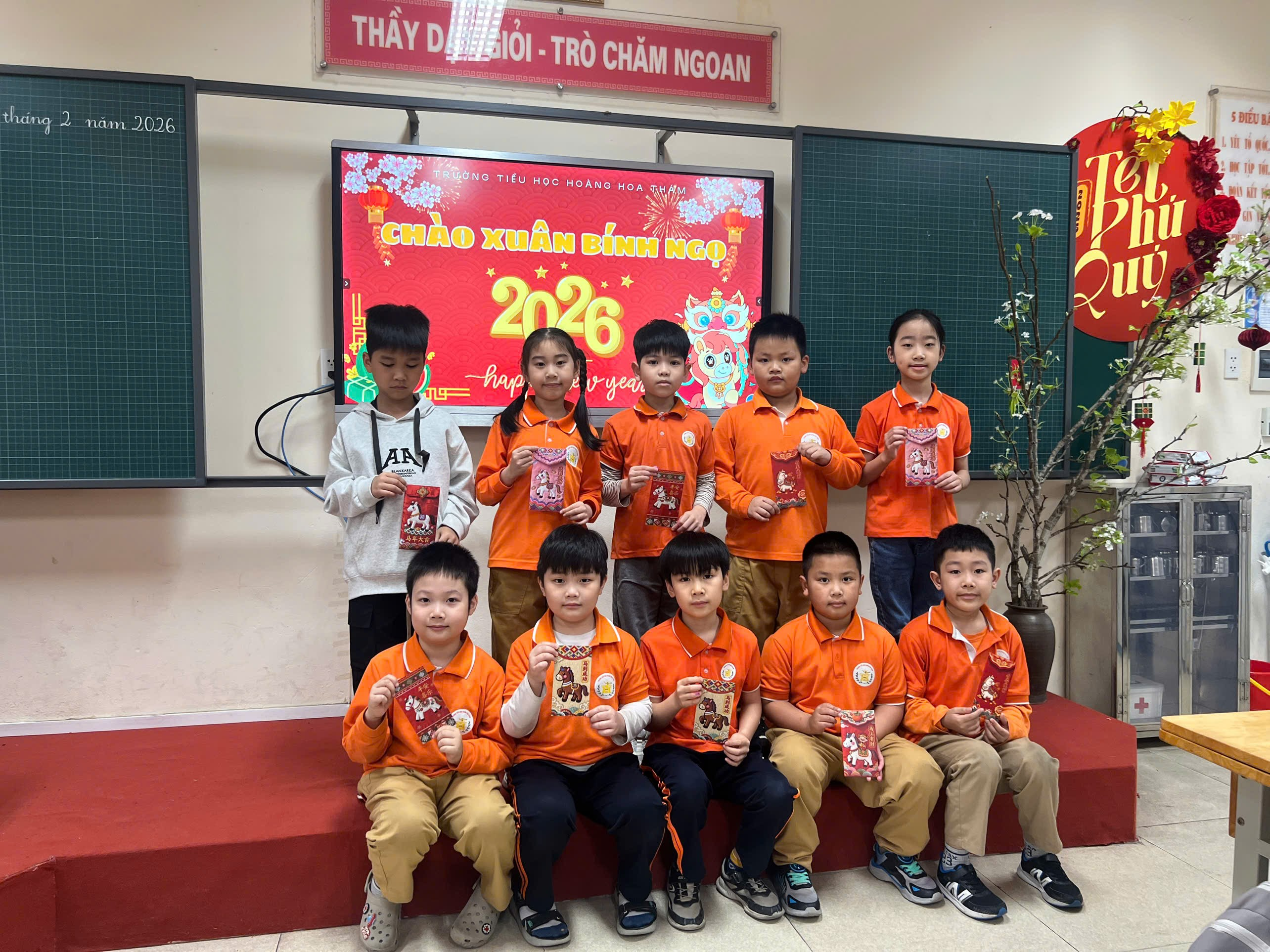 Sáng ngày 23/02/2026 (tức Mùng 7 Tết Bính Ngọ), khối 3 trường Tiểu học Hoàng Hoa Thám ngập tràn sắc đỏ, hương xuân nồng nàn; thầy và trò nhà trường tưng bừng ngày học đầu xuân với các hoạt động Khai xuân Bính Ngọ 2026.