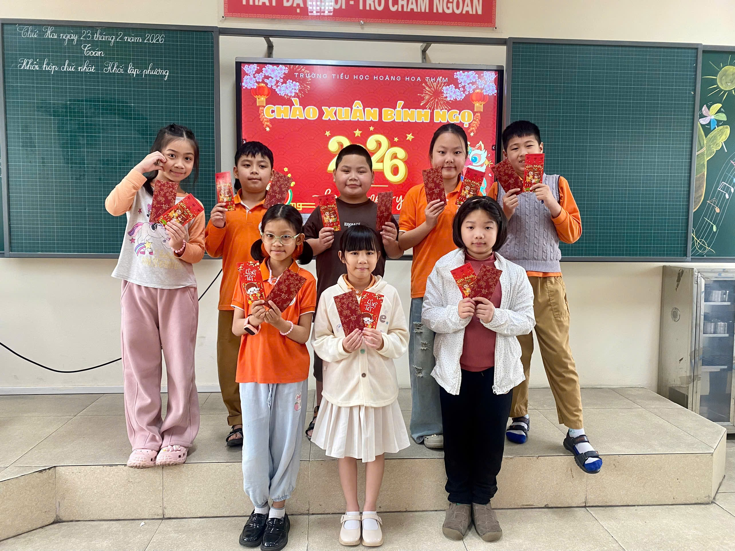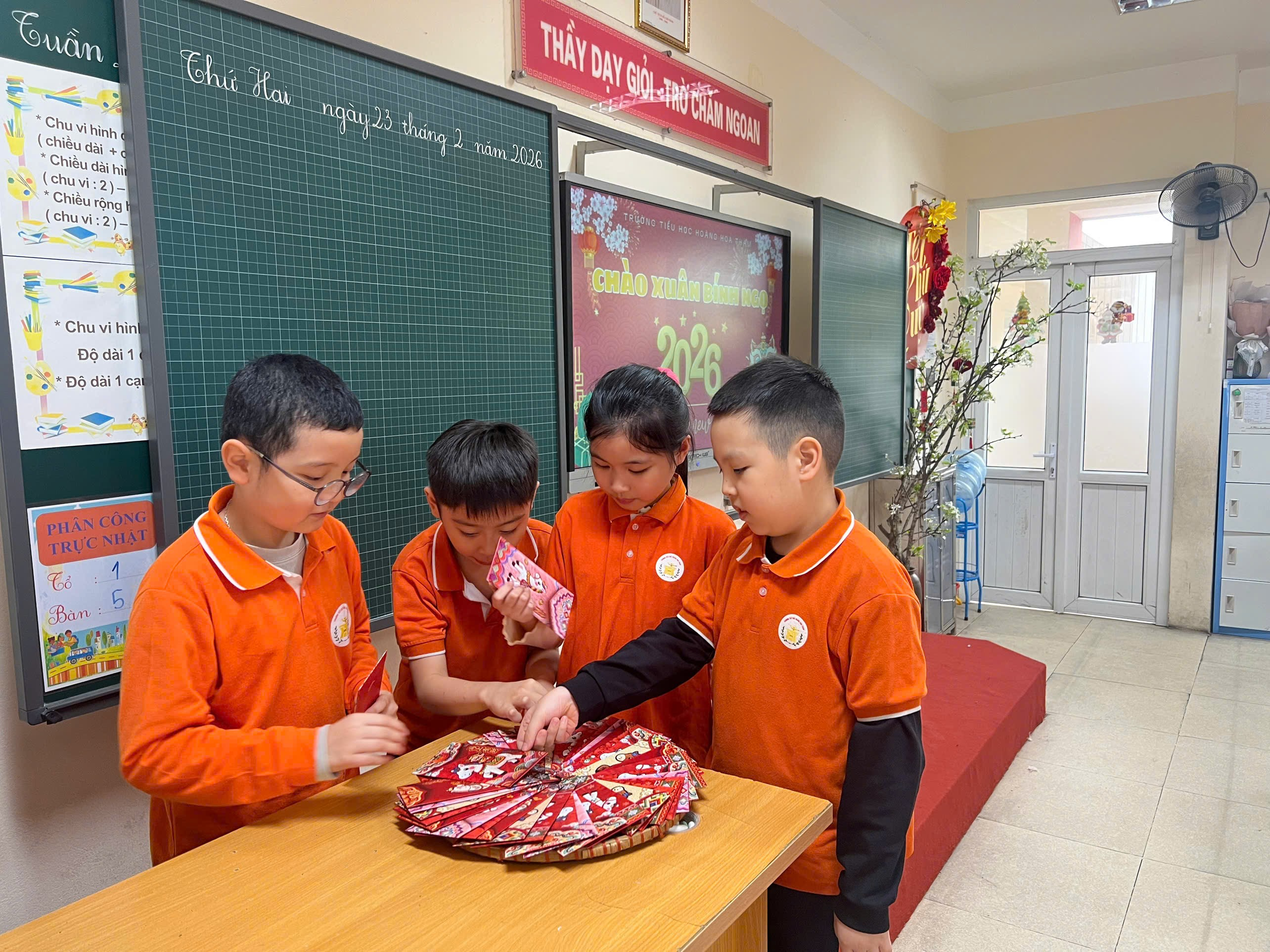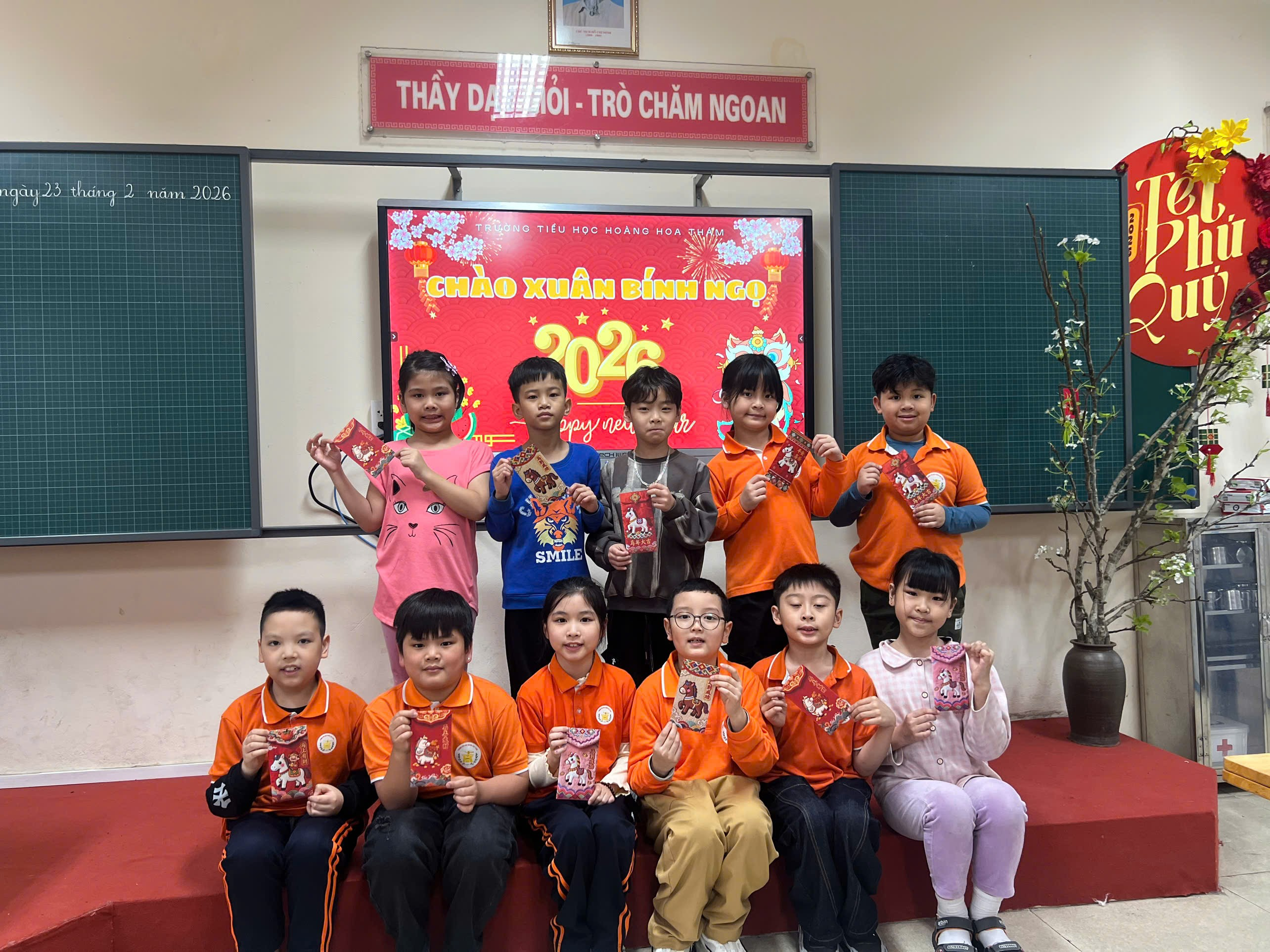 Sáng ngày 23/02/2026 (tức Mùng 7 Tết Bính Ngọ), khối 3 trường Tiểu học Hoàng Hoa Thám ngập tràn sắc đỏ, hương xuân nồng nàn; thầy và trò nhà trường tưng bừng ngày học đầu xuân với các hoạt động Khai xuân Bính Ngọ 2026.