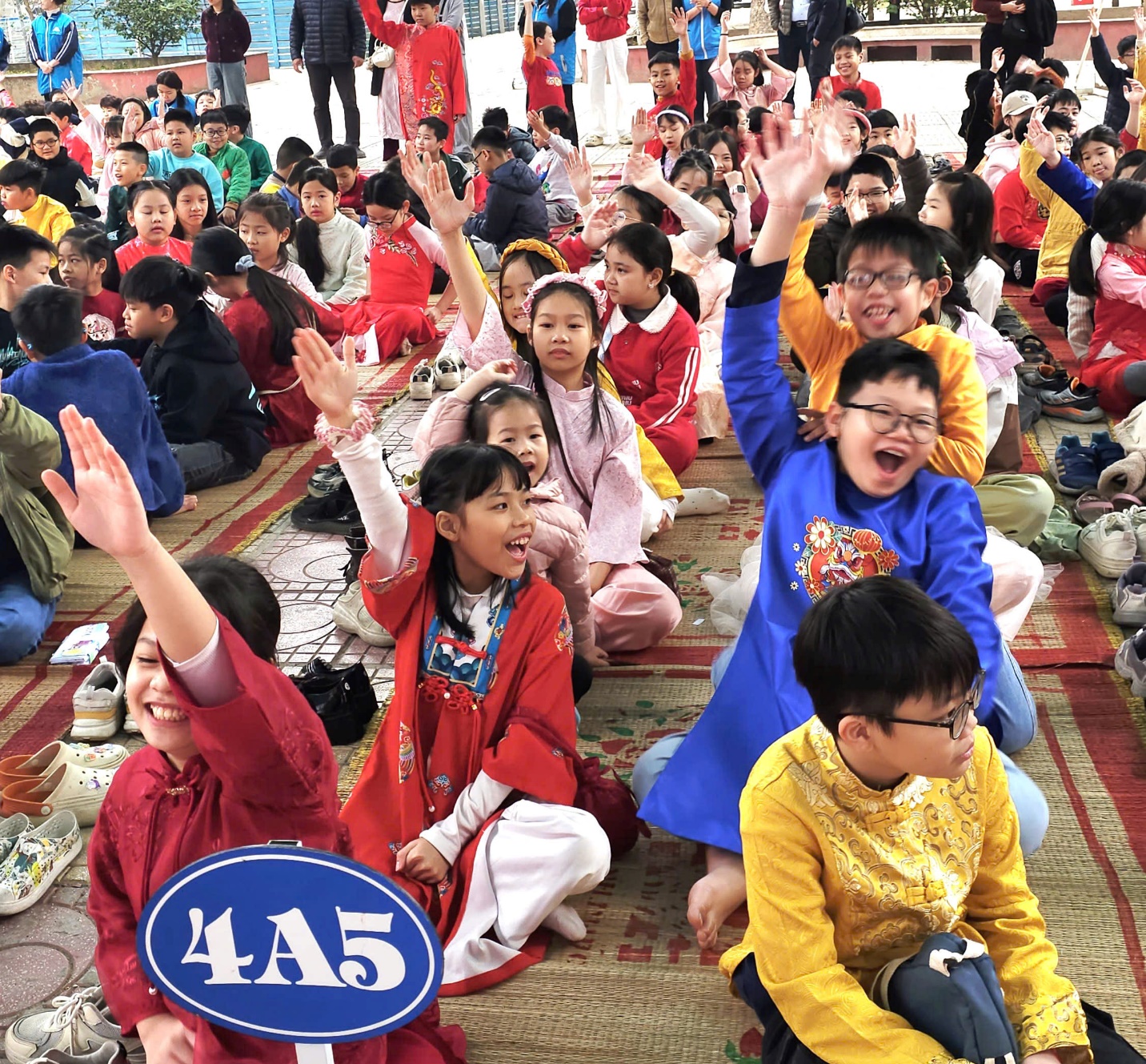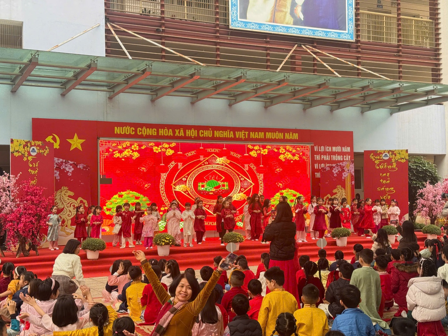 Mở đầu chương trình là những tiết mục văn nghệ đặc sắc do các em học sinh biểu diễn, mang đến bầu không khí vui tươi, náo nhiệt, đậm sắc xuân. Những điệu múa rộn ràng, lời ca trong trẻo cùng tiếng trống hội vang lên đã làm sân trường như bừng sáng, báo hiệu một mùa xuân mới đang về. Các tiết mục đậm đà bản sắc dân tộc như biểu diễn trống hội, múa lân hay giải câu đố… đã góp phần giúp học sinh hiểu thêm về truyền thống văn hóa tốt đẹp của dân tộc.