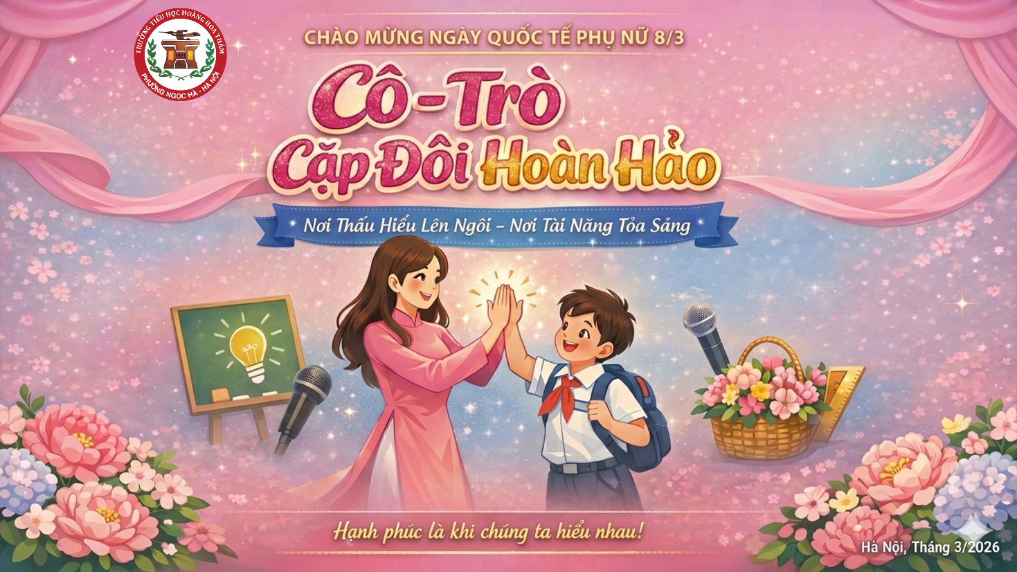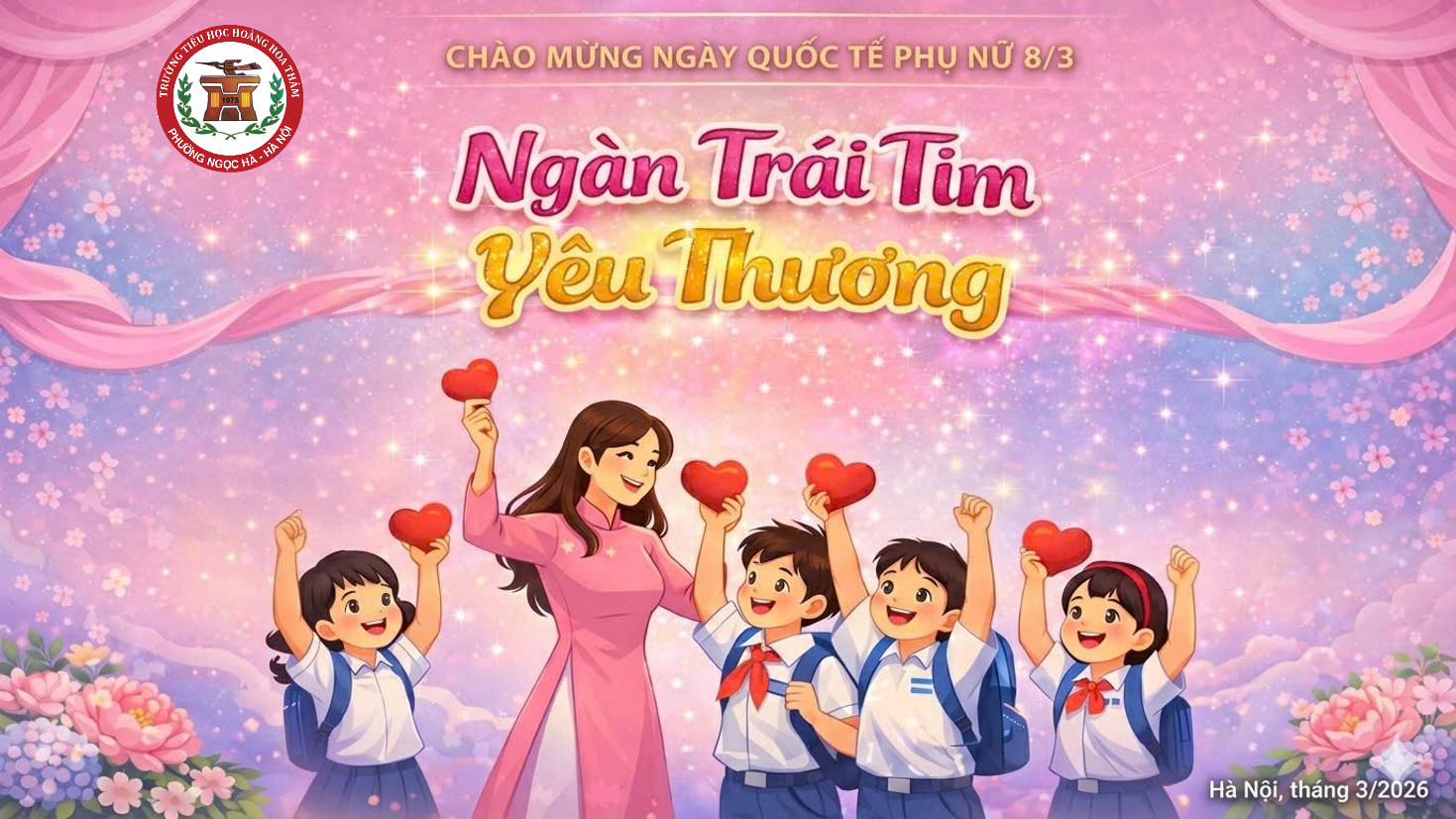 Sáng ngày 06 tháng 3 năm 2026, trong không khí rộn ràng hướng tới Ngày Quốc tế Phụ nữ 8/3, thầy và trò trường Tiểu học Hoàng Hoa Thám, phường Ngọc Hà, thành phố Hà Nội đã tổ chức buổi sinh hoạt tập thể đầy ý nghĩa với nhiều hoạt động sôi nổi, sáng tạo và giàu cảm xúc. Chương trình không chỉ là dịp để học sinh bày tỏ tình cảm yêu thương, lòng biết ơn đối với bà, mẹ và cô giáo mà còn góp phần giáo dục các em về giá trị của sự quan tâm, sẻ chia trong cuộc sống.
