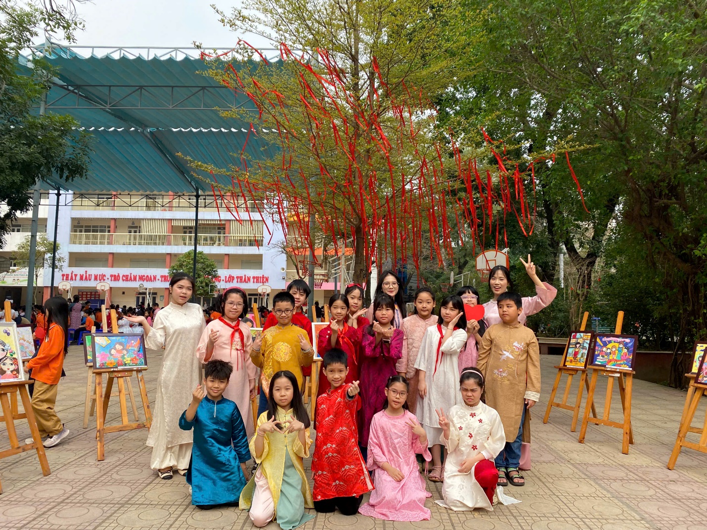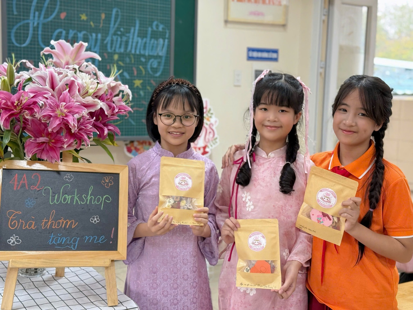 Trong từng hoạt động, các em học sinh đều thể hiện sự hào hứng và tập trung. Những đôi bàn tay nhỏ bé nhưng khéo léo đã chăm chút cho từng sản phẩm, từ việc chọn cây, trang trí chậu, gói trà cho đến vẽ và viết thiệp. Mỗi món quà tuy giản dị nhưng lại mang theo biết bao tình cảm trong sáng và chân thành của các em.