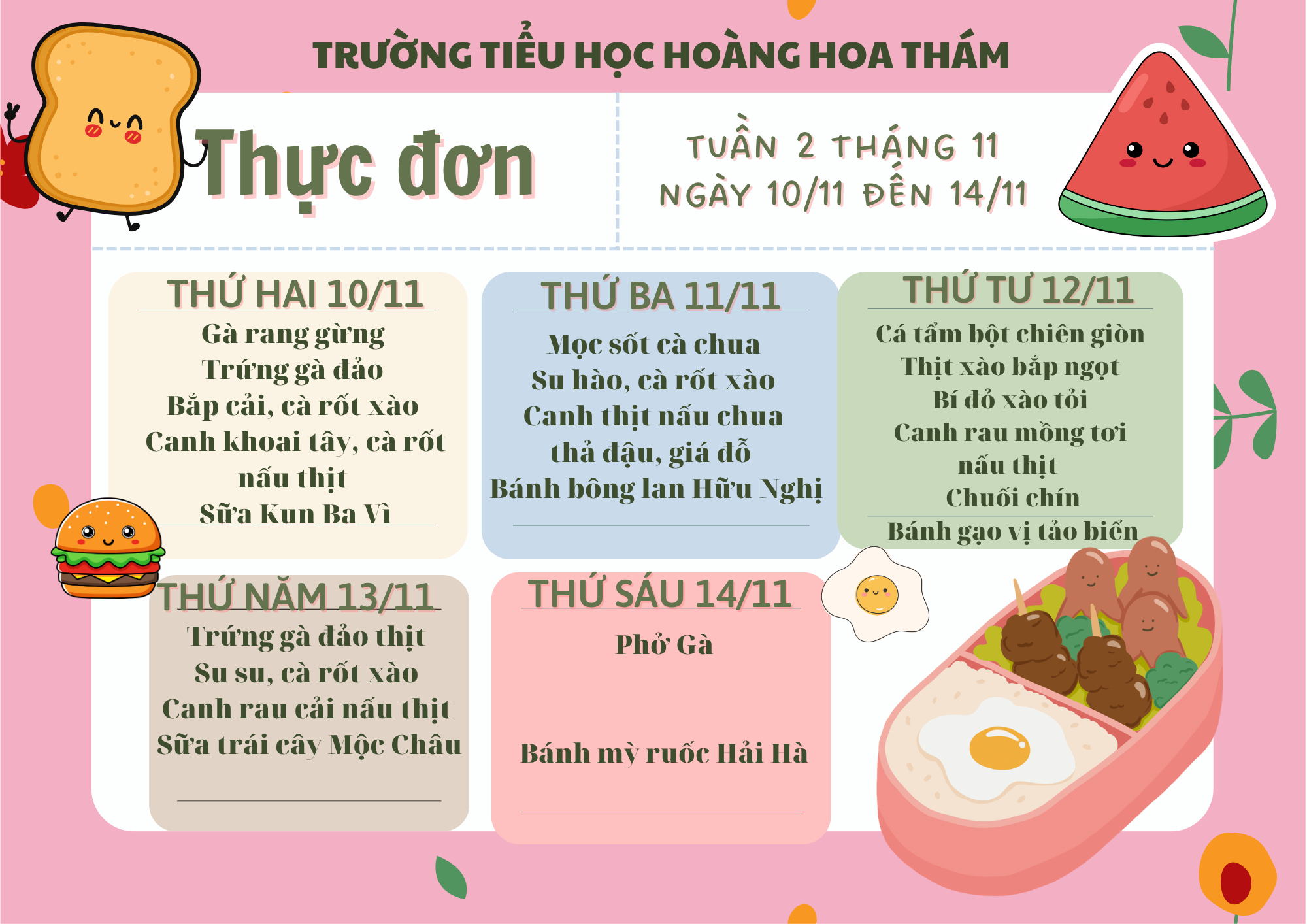 Thực đơn suất ăn bán trú tuần 2 tháng 11 năm 2025