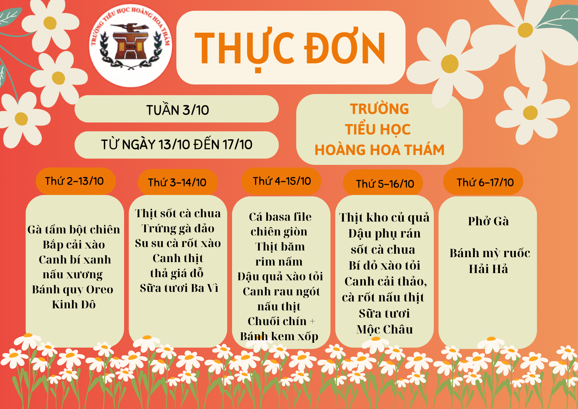 Thực đơn suất ăn bán trú tuần 3 tháng 10 năm 2025