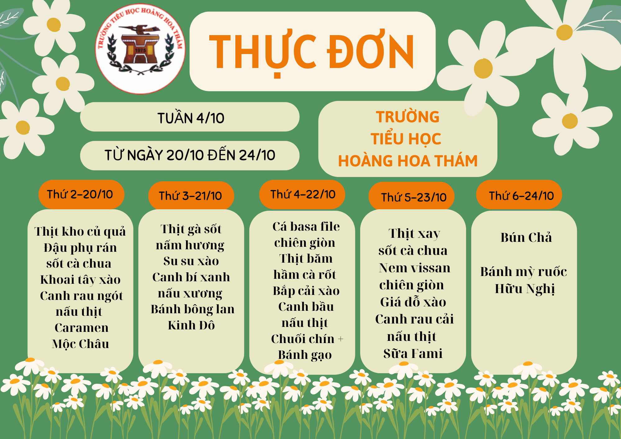Thực đơn suất ăn bán trú tuần 4 tháng 10 năm 2025