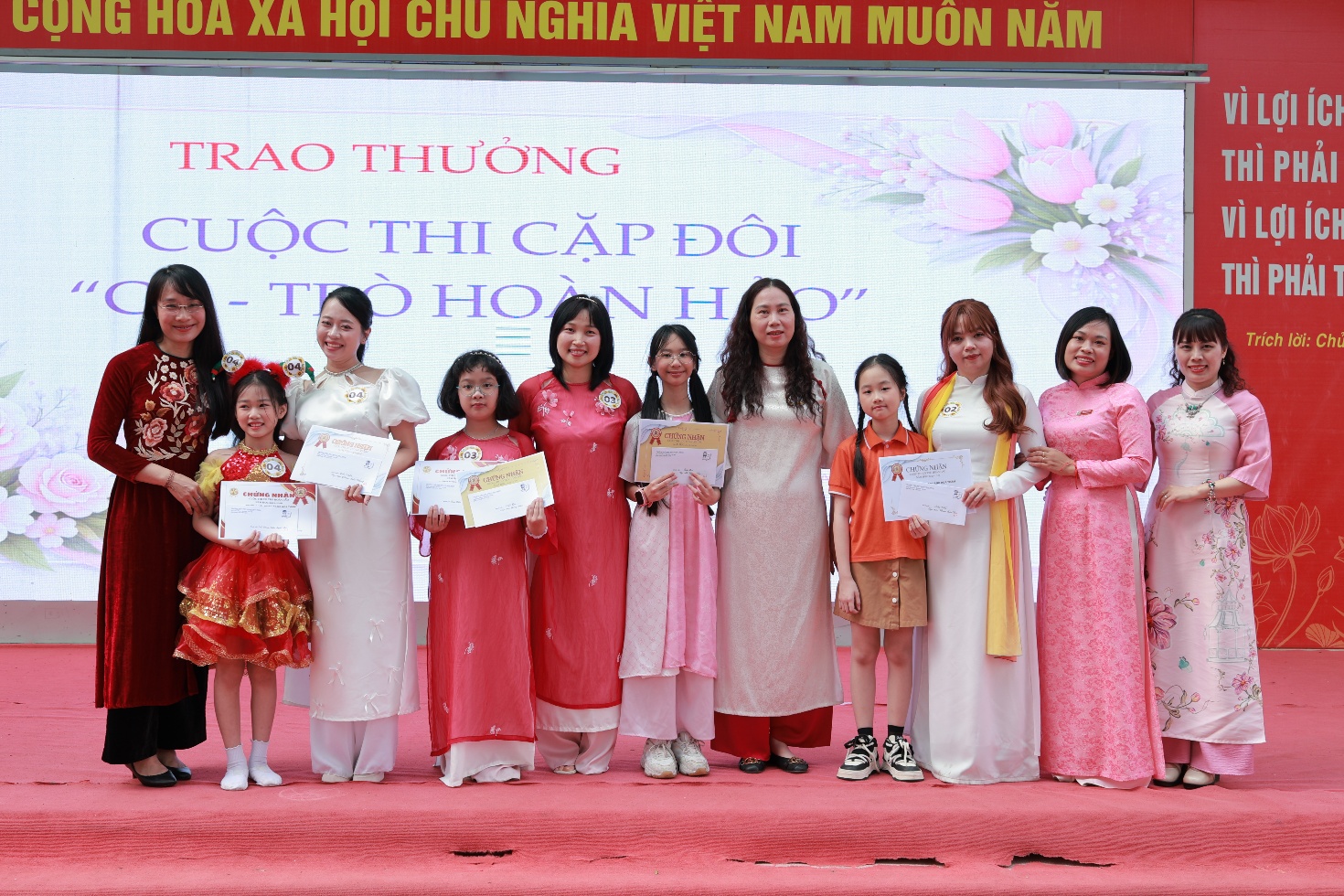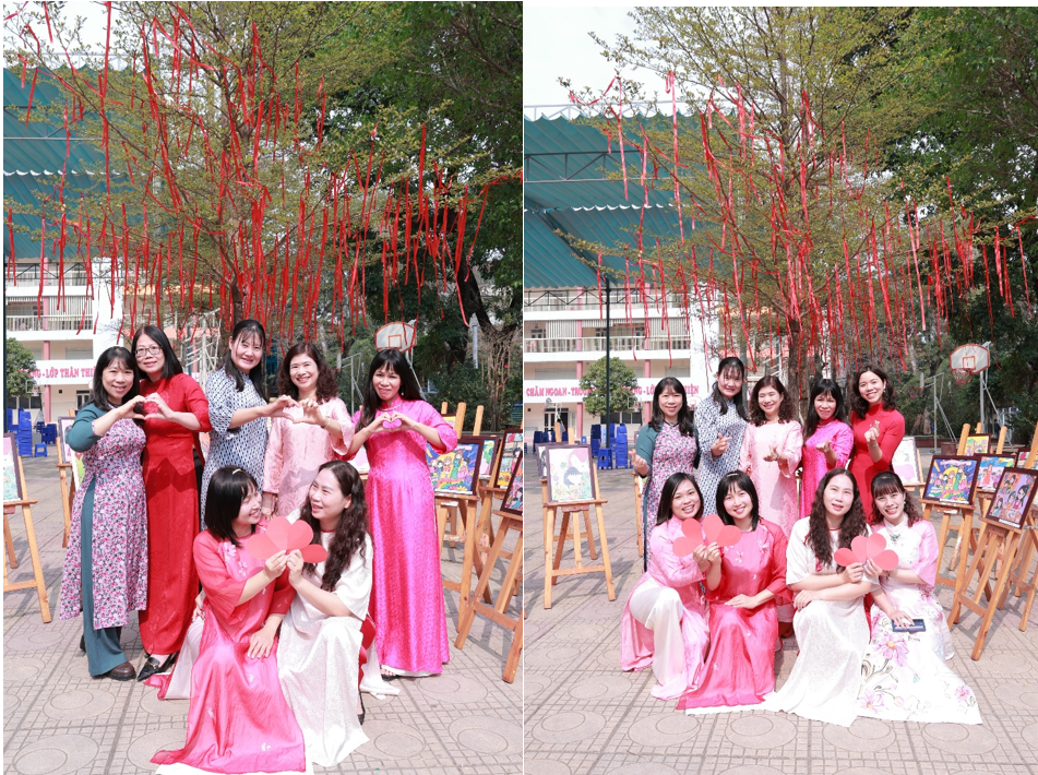 Việc mặc áo dài trong dịp này không chỉ nhằm tôn vinh vẻ đẹp của trang phục truyền thống mà còn góp phần giáo dục học sinh về giá trị văn hóa dân tộc, giúp các em thêm hiểu, thêm yêu và tự hào về bản sắc Việt Nam. Thông qua những hình ảnh gần gũi từ thầy cô và bạn bè, các em học sinh được tiếp cận với nét đẹp truyền thống một cách tự nhiên và đầy ý nghĩa.