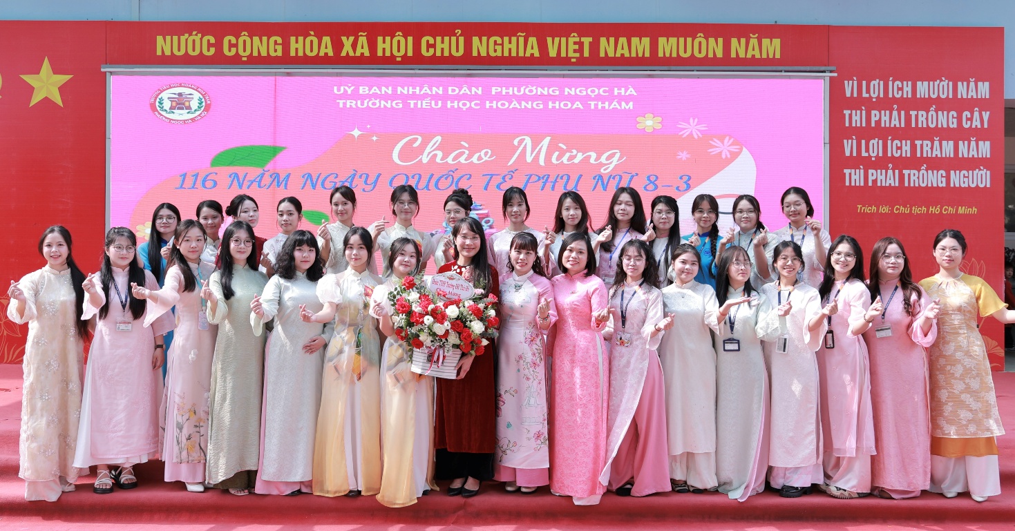 Hòa chung không khí chào mừng Tuần lễ Áo dài Việt Nam, tập thể cán bộ, giáo viên, nhân viên cùng các bạn học sinh nữ trường Tiểu học Hoàng Hoa Thám đã tích cực hưởng ứng bằng việc mặc trang phục áo dài khi tham gia Lễ kỷ niệm 116 năm Ngày Quốc tế Phụ nữ 8/3.
