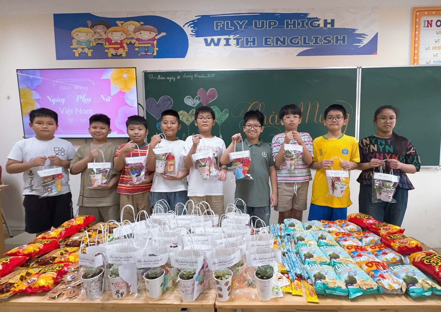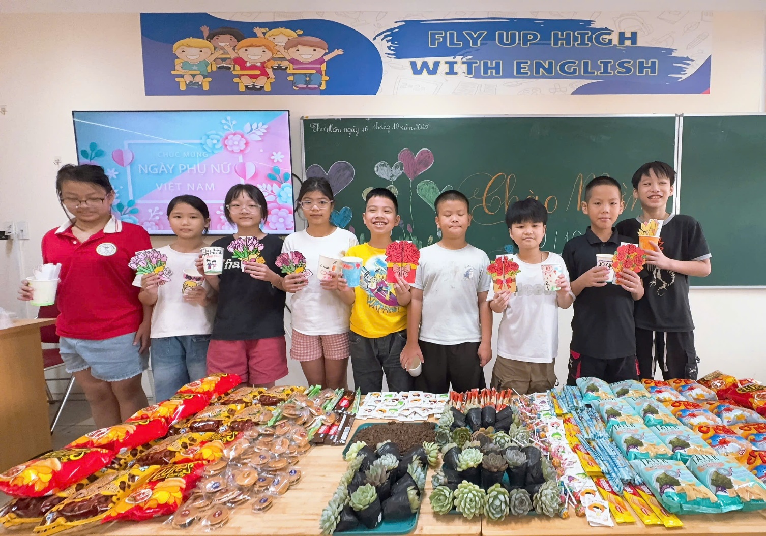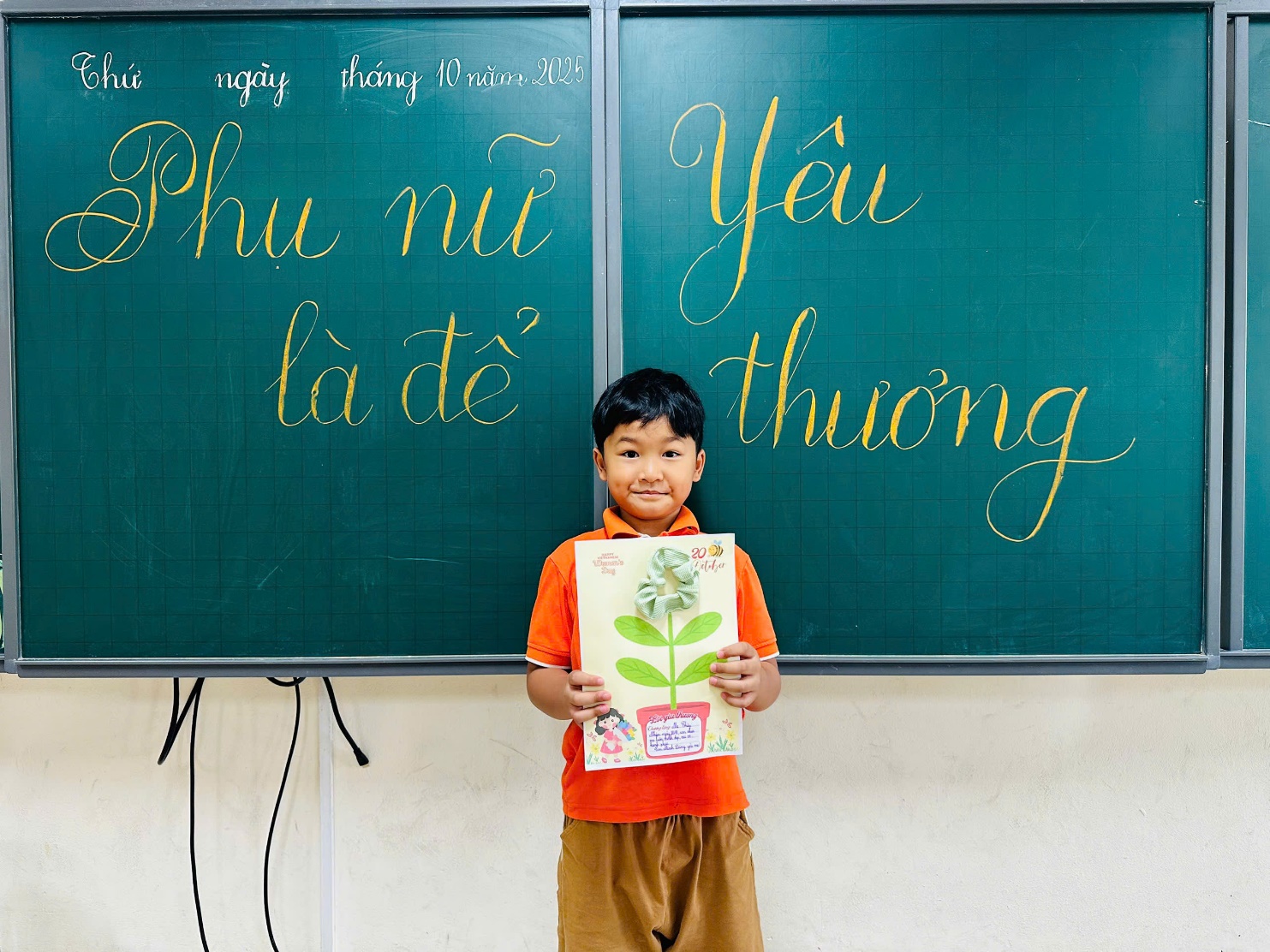 Ngay từ đầu tháng 10, không khí rộn ràng, tươi vui đã lan tỏa khắp nhà trường. Các lớp học được trang trí rực rỡ sắc hoa, những lời chúc yêu thương và tấm thiệp xinh xắn được học sinh gửi tặng cô giáo, thể hiện lòng biết ơn và sự trân trọng. Mỗi nụ cười, mỗi bông hoa nhỏ đều chứa đựng tình cảm chân thành, góp phần làm nên một ngày 20/10 thật ý nghĩa và ấm áp trong mái trường.