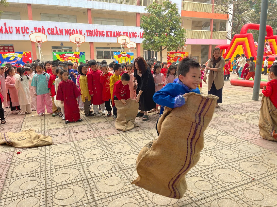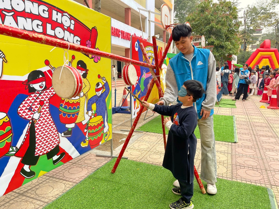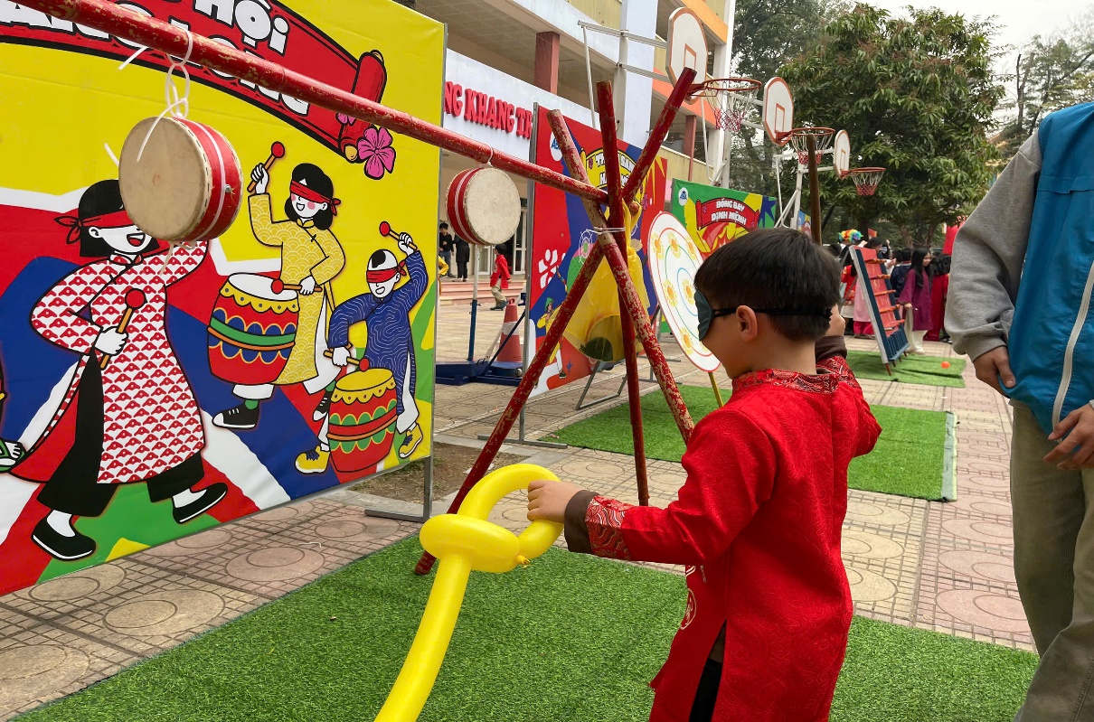 Nếu khu vực gói bánh mang lại không khí ấm cúng, tỉ mẩn thì khu vực sân thể chất lại là nơi "bùng nổ" năng lượng với các trò chơi dân gian. Tiếng trống hội liên hồi hòa cùng tiếng hò reo vang dội đã tạo nên một ngày hội thực sự.