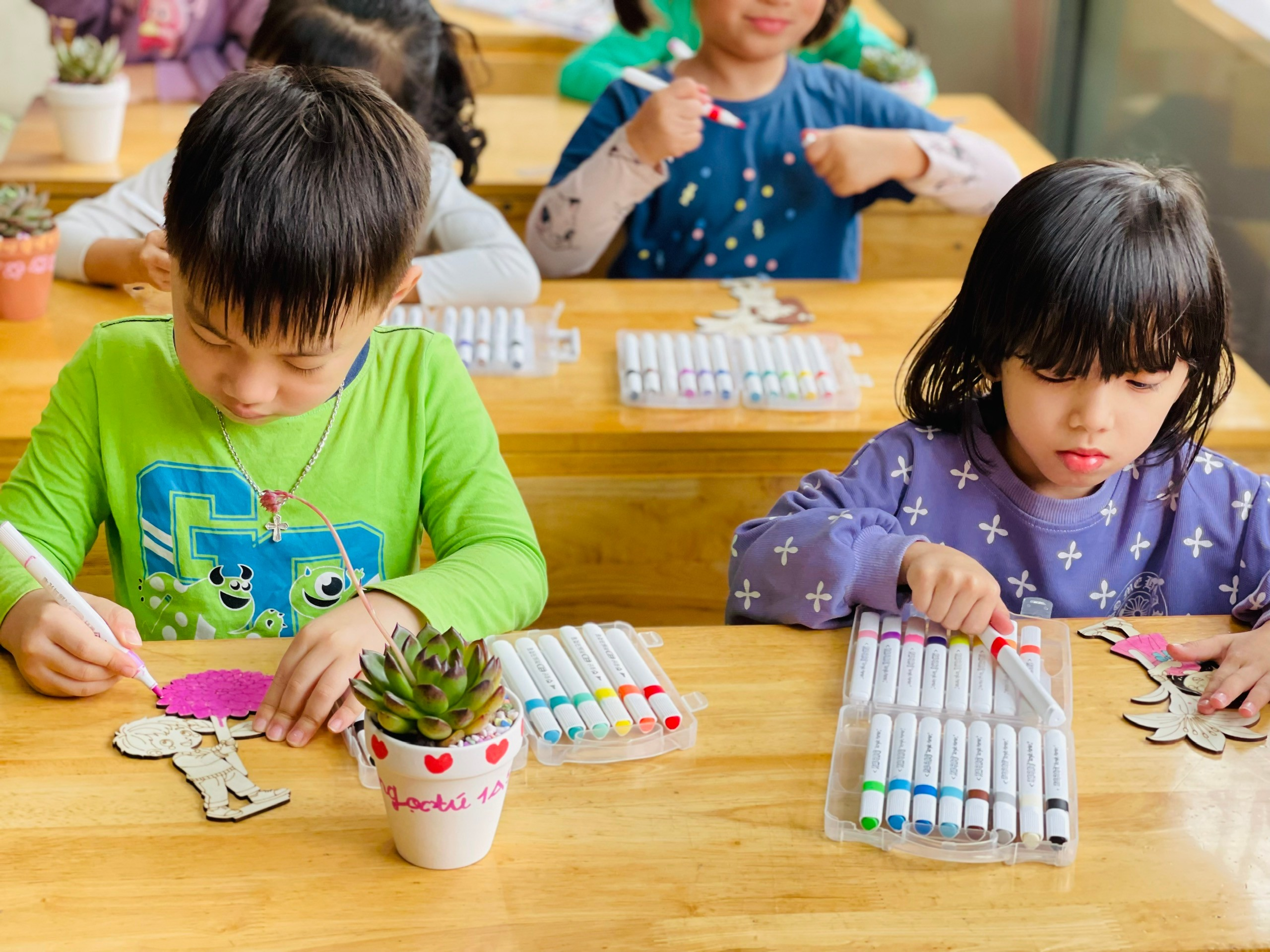 Những chậu sen đá được chính tay các bạn nhỏ 1A5 trồng là món quà ý nghĩa dành tặng bà, tặng mẹ. Cây sen đá mang ý nghĩa mang lại sự may mắn, bình yên và năng lượng tích cực chính là điều mà các bạn nhỏ gửi gắm dành tặng những người phụ nữ thân yêu của mình.
