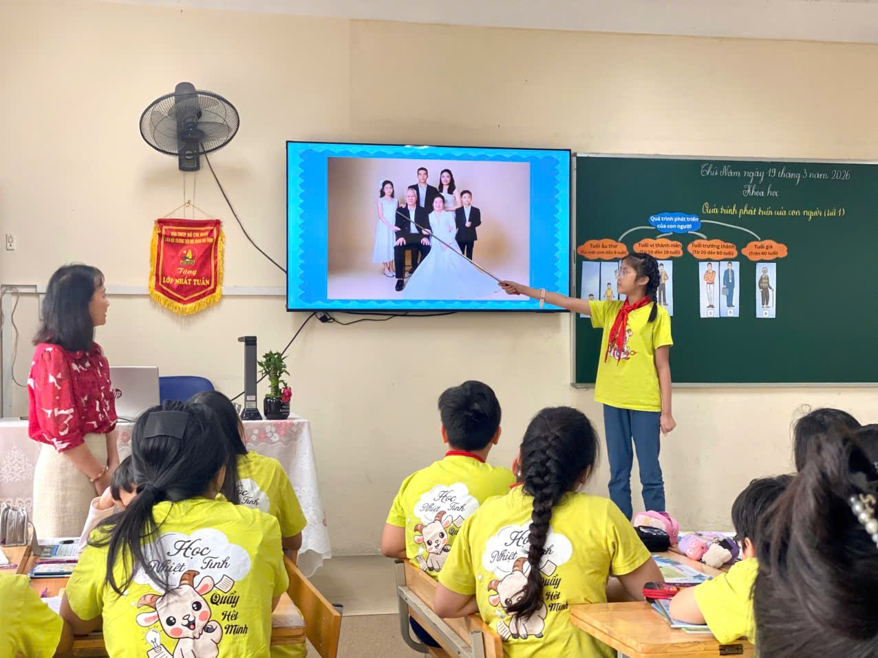 Điểm nổi bật của tiết học là việc tổ chức các hoạt động học tập tích cực, phát huy tối đa năng lực của học sinh. Sau khi có cái nhìn tổng quan, các em được tham gia hoạt động tìm hiểu sâu hơn về đặc điểm của tuổi ấu thơ – giai đoạn đầu đời đầy ý nghĩa của mỗi con người. Thông qua làm việc nhóm, thảo luận và trình bày, học sinh không chỉ hiểu kiến thức mà còn rèn luyện kỹ năng hợp tác, giao tiếp và tư duy.