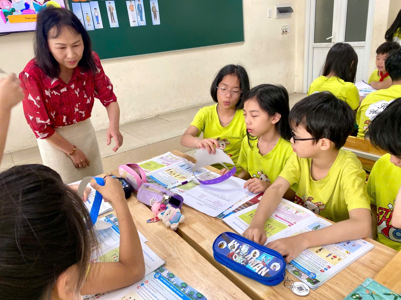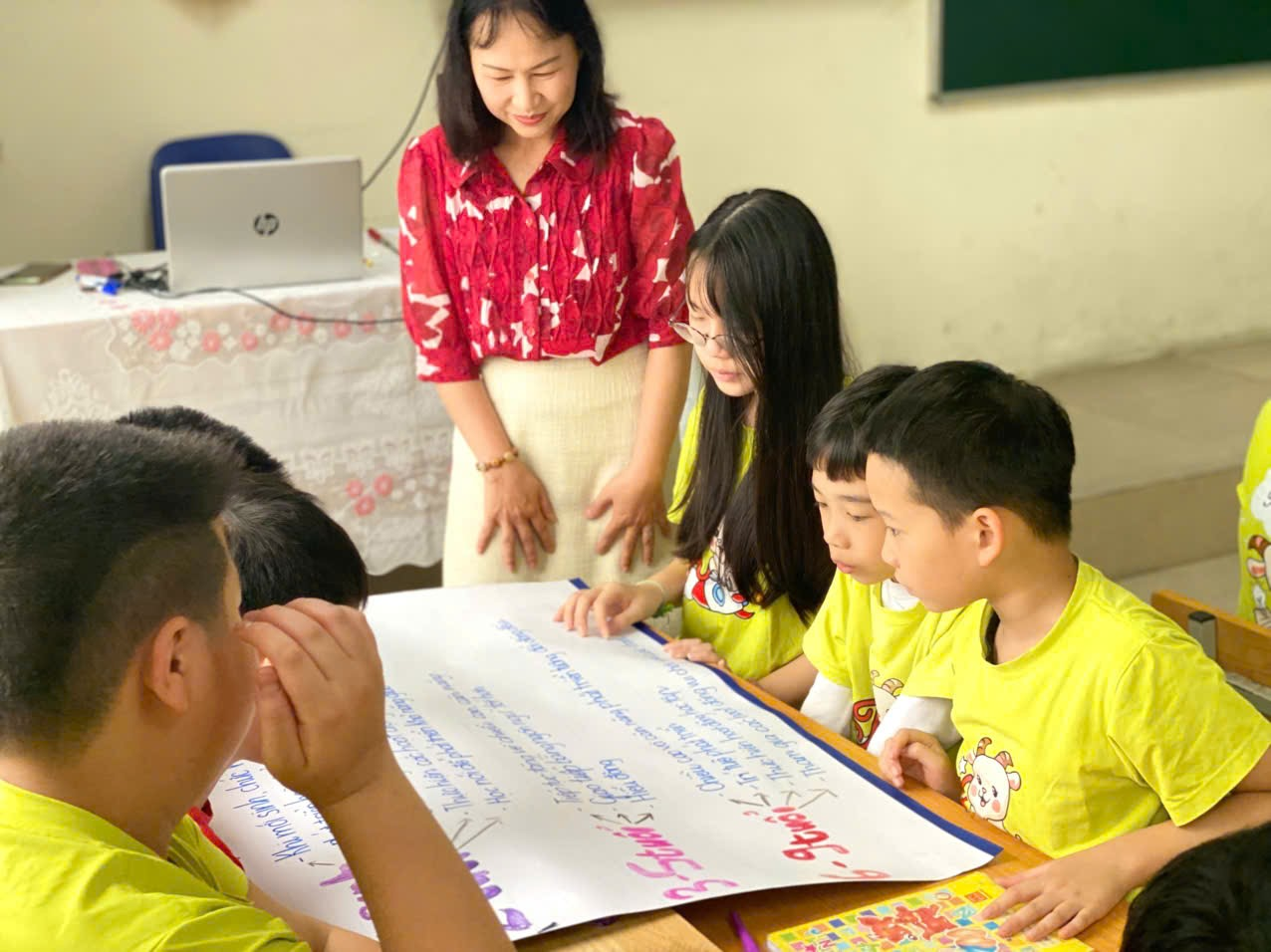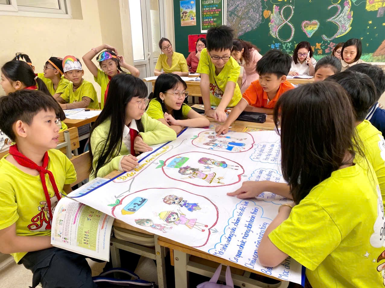 Đặc biệt, học sinh lớp 5A7 đã thể hiện sự sáng tạo và tự tin khi trình bày kết quả học tập bằng nhiều hình thức phong phú như: sơ đồ tư duy, tiểu phẩm, bài vè. Những sản phẩm học tập sinh động, giàu cảm xúc đã mang lại không khí lớp học sôi nổi, đồng thời giúp kiến thức trở nên gần gũi, dễ nhớ hơn. Các em không chỉ học bằng trí tuệ mà còn bằng cảm xúc và trải nghiệm của chính mình.