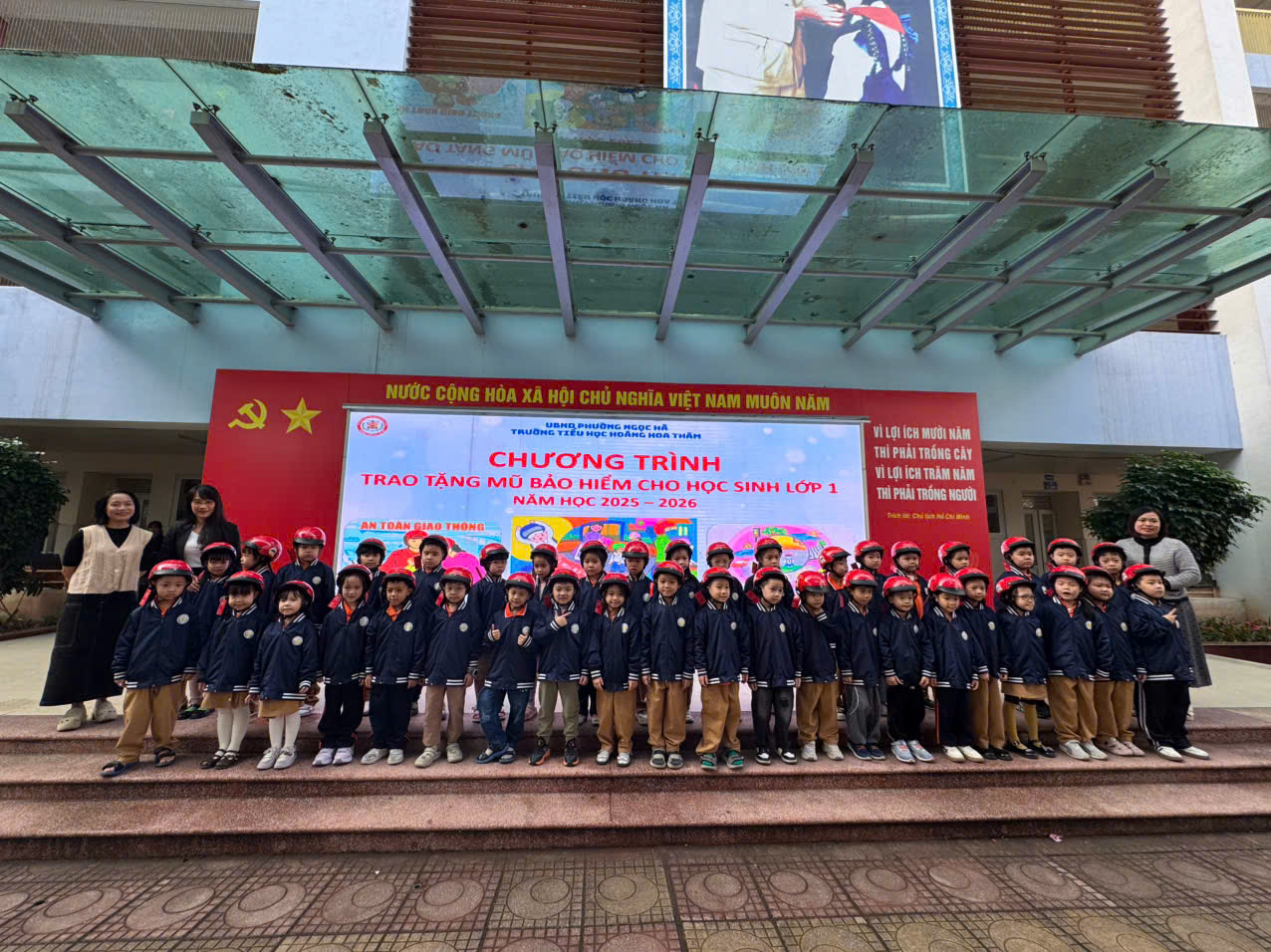 Tại buổi sinh hoạt dưới cờ ngày 8/12, 305 em học sinh lớp 1 của Trường Tiểu học Hoàng Hoa Thám đã được trao tặng những chiếc mũ bảo hiểm xinh xắn, đạt quy chuẩn kỹ thuật quốc gia.