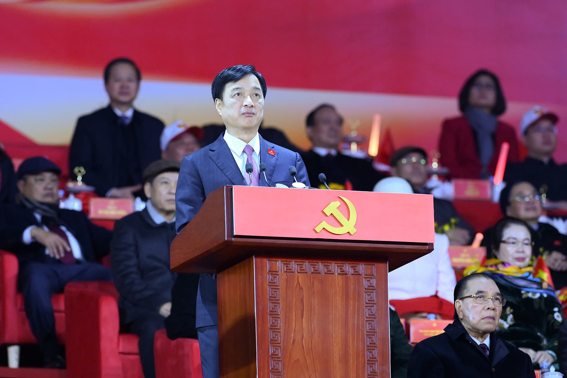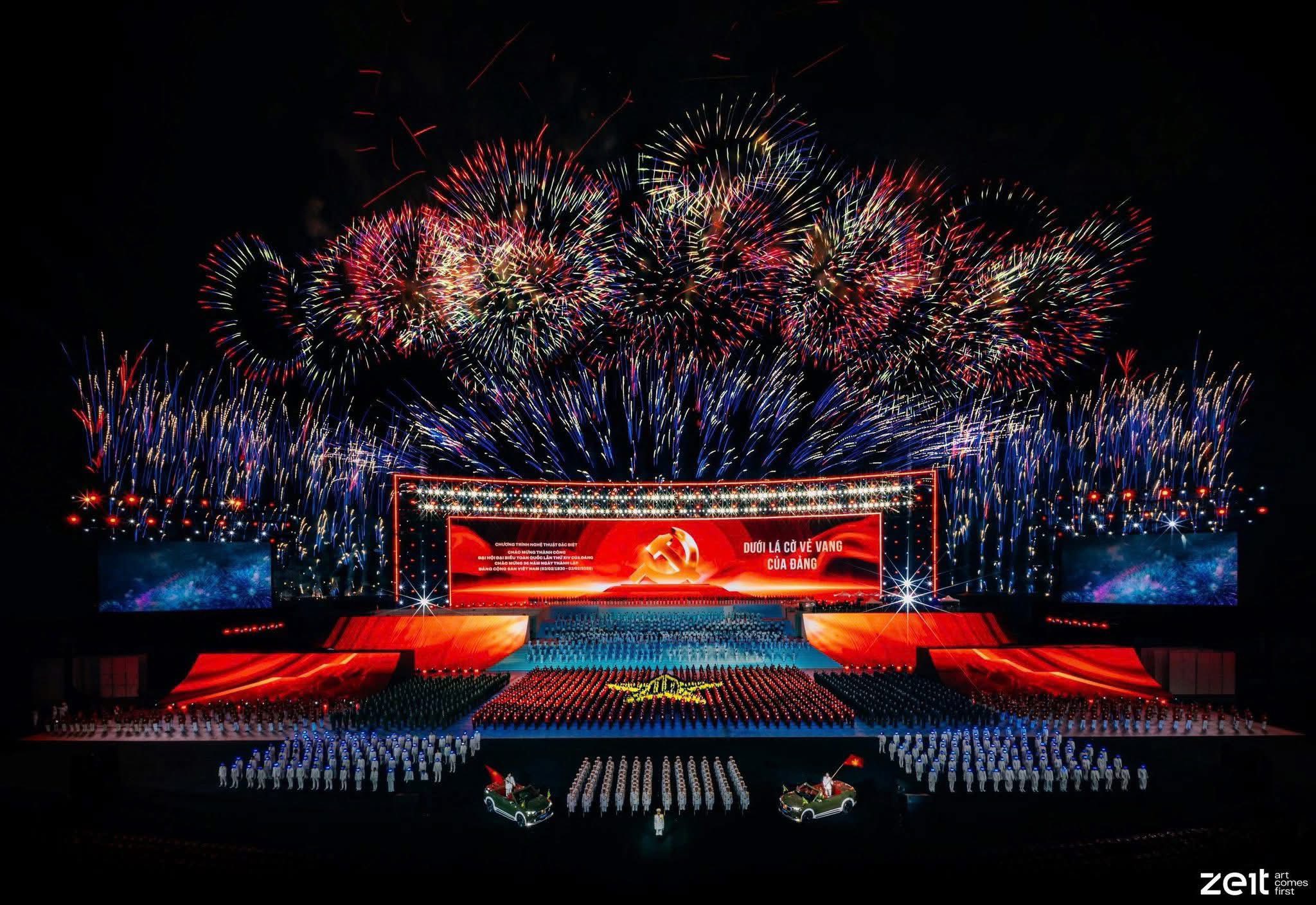 Tại chương trình, các đồng chí lãnh đạo Đảng, Nhà nước và các đại biểu, nhân dân đã thưởng thức chương trình nghệ thuật đặc biệt với chủ đề Dưới lá cờ vinh quang của Đảng - một khúc tráng ca của lòng yêu nước, của niềm tin son sắt với Đảng, của khí thế tự hào, khí thế hành động và khát vọng về một tương lai rạng rỡ Việt Nam. Hơn 6000 chiến sĩ, ca sĩ, diễn viên chuyên nghiệp và 100 bạn nhỏ trong dàn hợp xướng thiếu nhi của Trung tâm nghệ thuật Besinger tham gia chương trình nghệ thuật đặc biệt chào mừng thành công của Đại Hội Đảng toàn Quốc và 96 năm ngày thành lập Đảng Cộng sản Việt Nam (3/2/1930 – 3/2/2026).