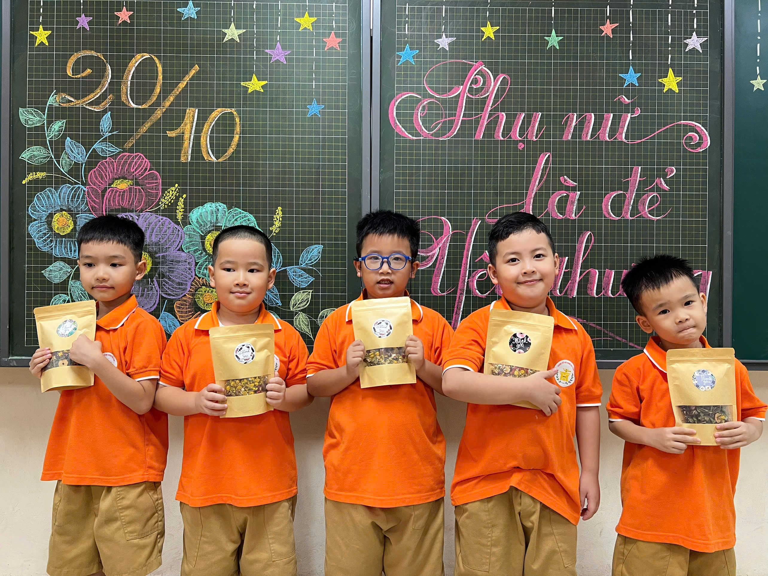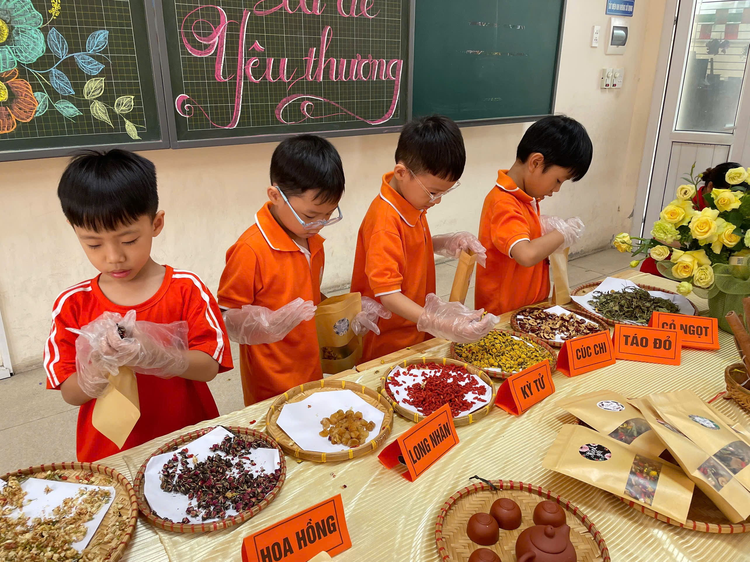 Từ những nguyên liệu tự nhiên ấy, các em nhỏ đã khéo léo pha trộn, chia túi, gói trà và trang trí nhãn “Tặng mẹ yêu” bằng đôi bàn tay xinh xắn của mình. Mỗi túi trà nhỏ xinh không chỉ chứa đựng hương thơm của thiên nhiên mà còn là tình yêu thương, lòng biết ơn và sự quan tâm chân thành của các em dành cho mẹ.