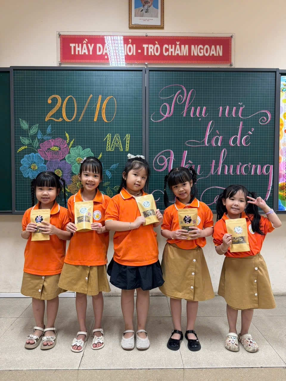 Những lời nói ngây thơ ấy khiến không khí lớp học thêm ấm áp, đầy yêu thương. Các cô giáo xúc động khi chứng kiến từng khuôn mặt rạng rỡ, từng bàn tay nhỏ bé nâng niu gói trà – như gửi gắm bao tình cảm đến người mẹ thân yêu.