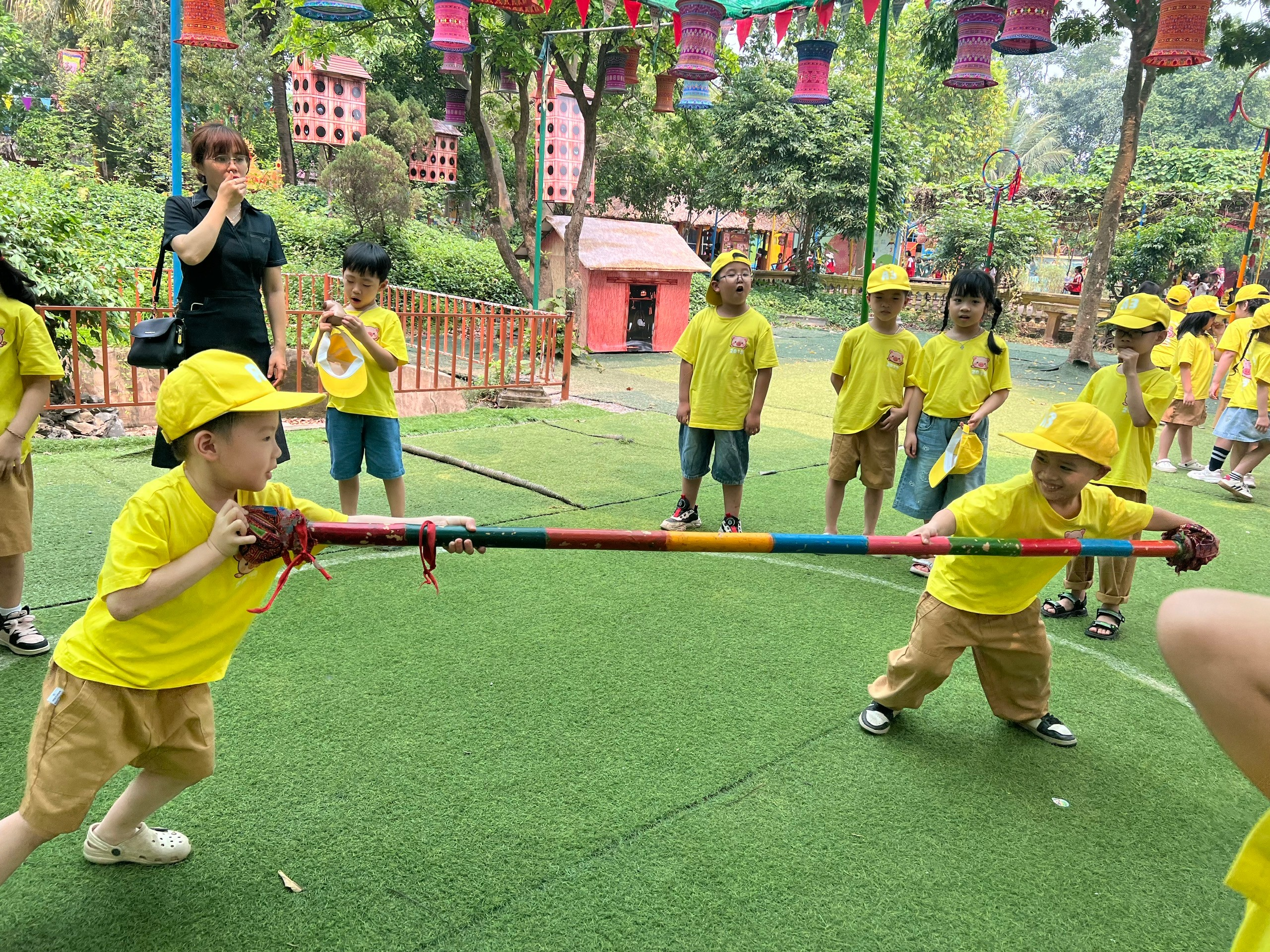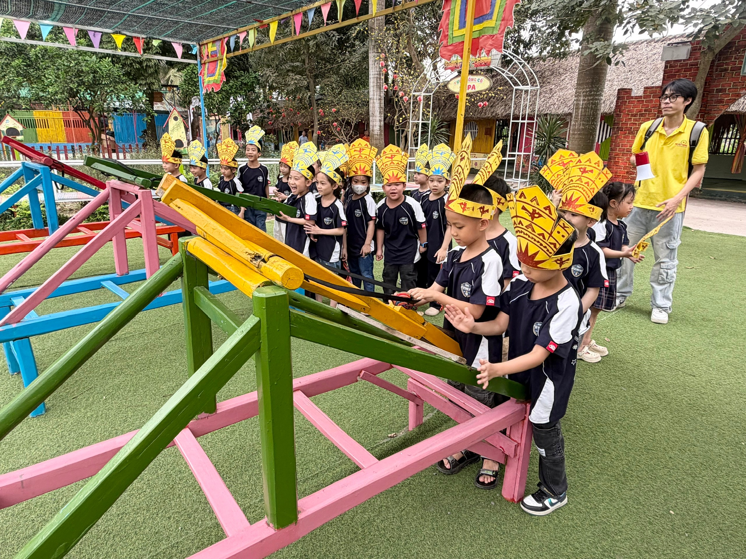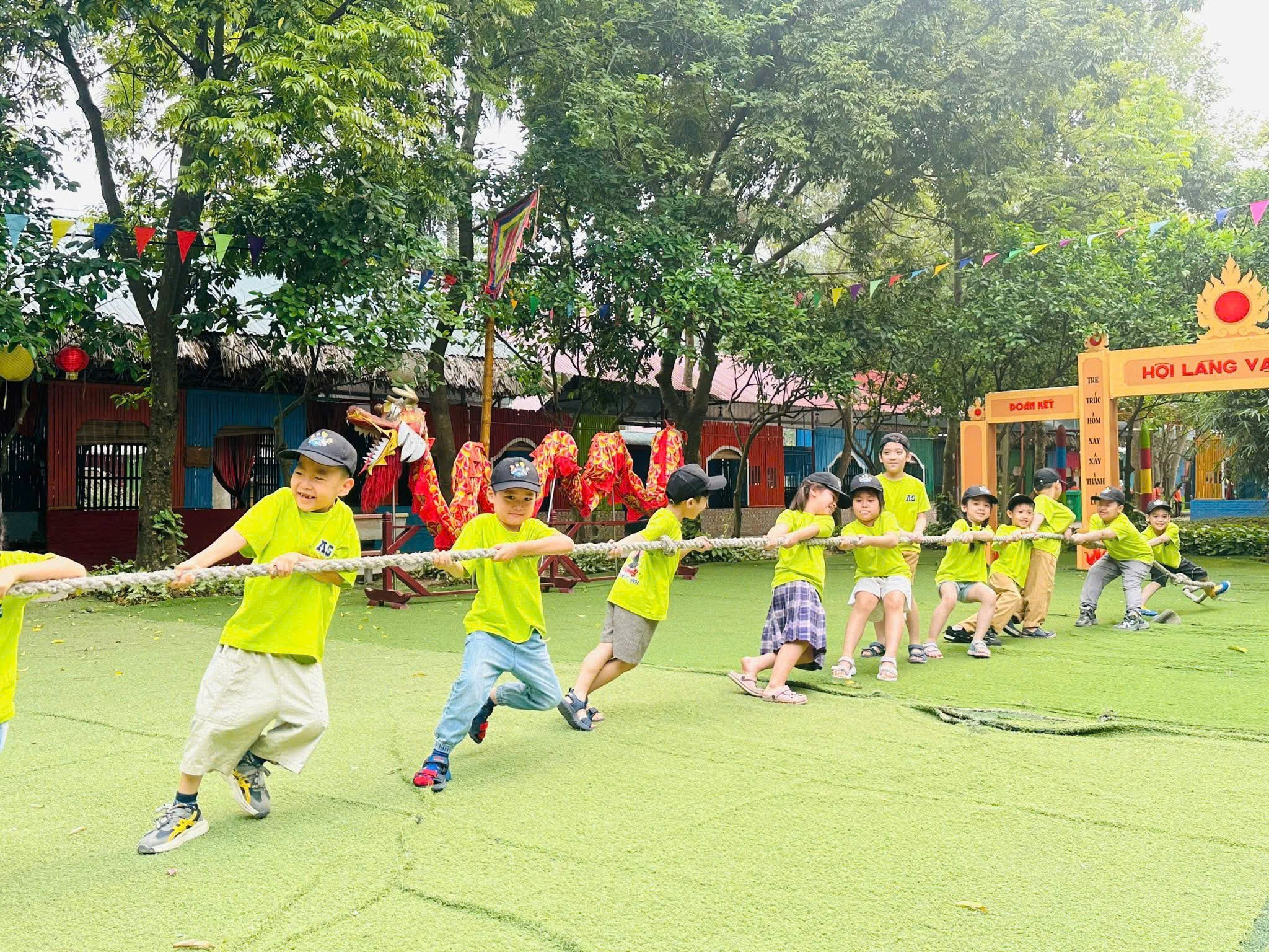 Teambuilding bùng nổ: Những thử thách đòi hỏi sự phối hợp nhịp nhàng đã giúp các bạn nhỏ khối 1 học cách lắng nghe và hỗ trợ lẫn nhau.