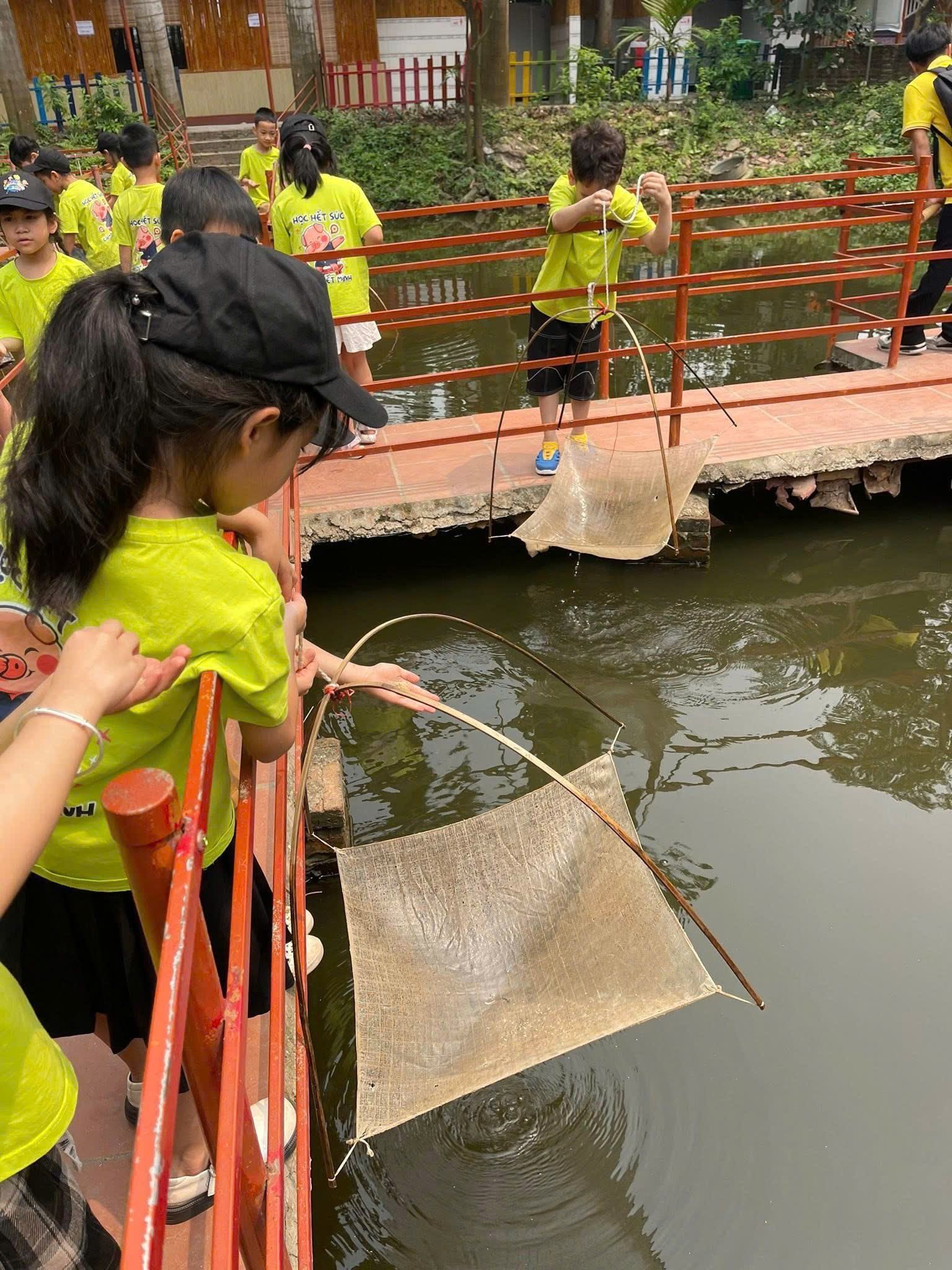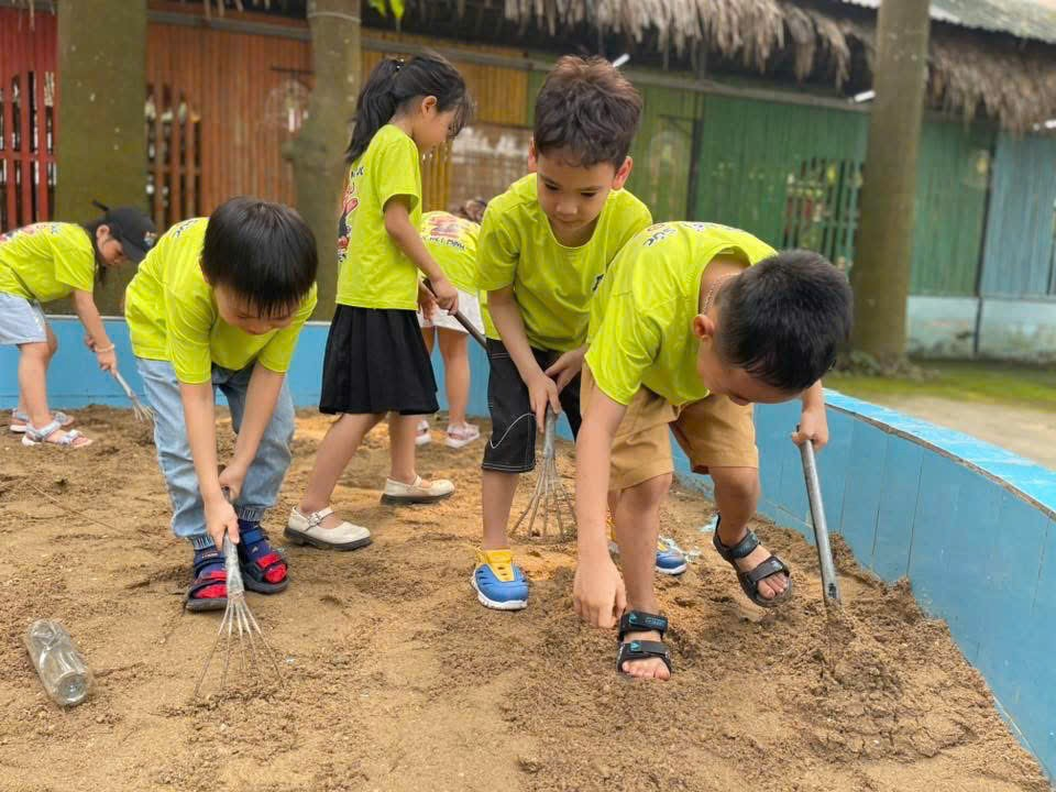 Trải nghiệm làm nông dân thực thụ: Tiếng cười giòn giã vang lên khắp khu vực cào ngao và nuôi cá. Những đôi bàn tay nhỏ nhắn lần đầu tiếp xúc với bùn đất, với những chú cá nhỏ bơi lội, mang lại cảm giác thích thú khó quên.