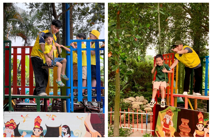 Vận động không ngừng nghỉ: Khu trò chơi liên hoàn và trượt zip là nơi các con thể hiện sự khéo léo và lòng dũng cảm.