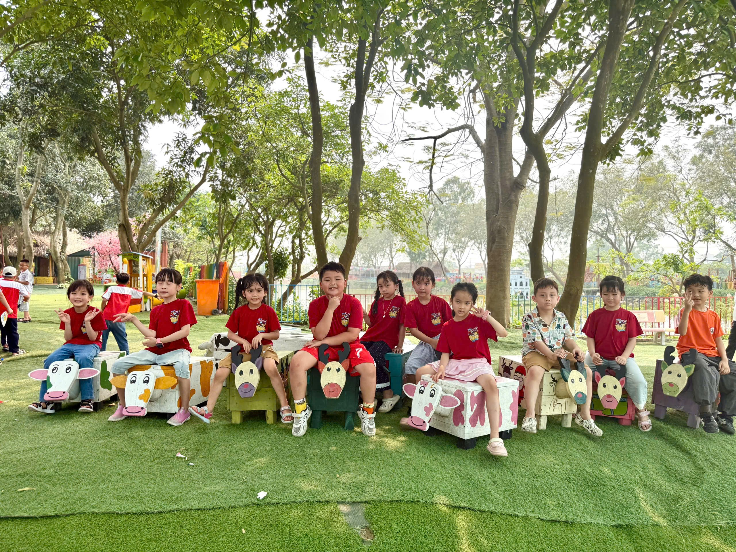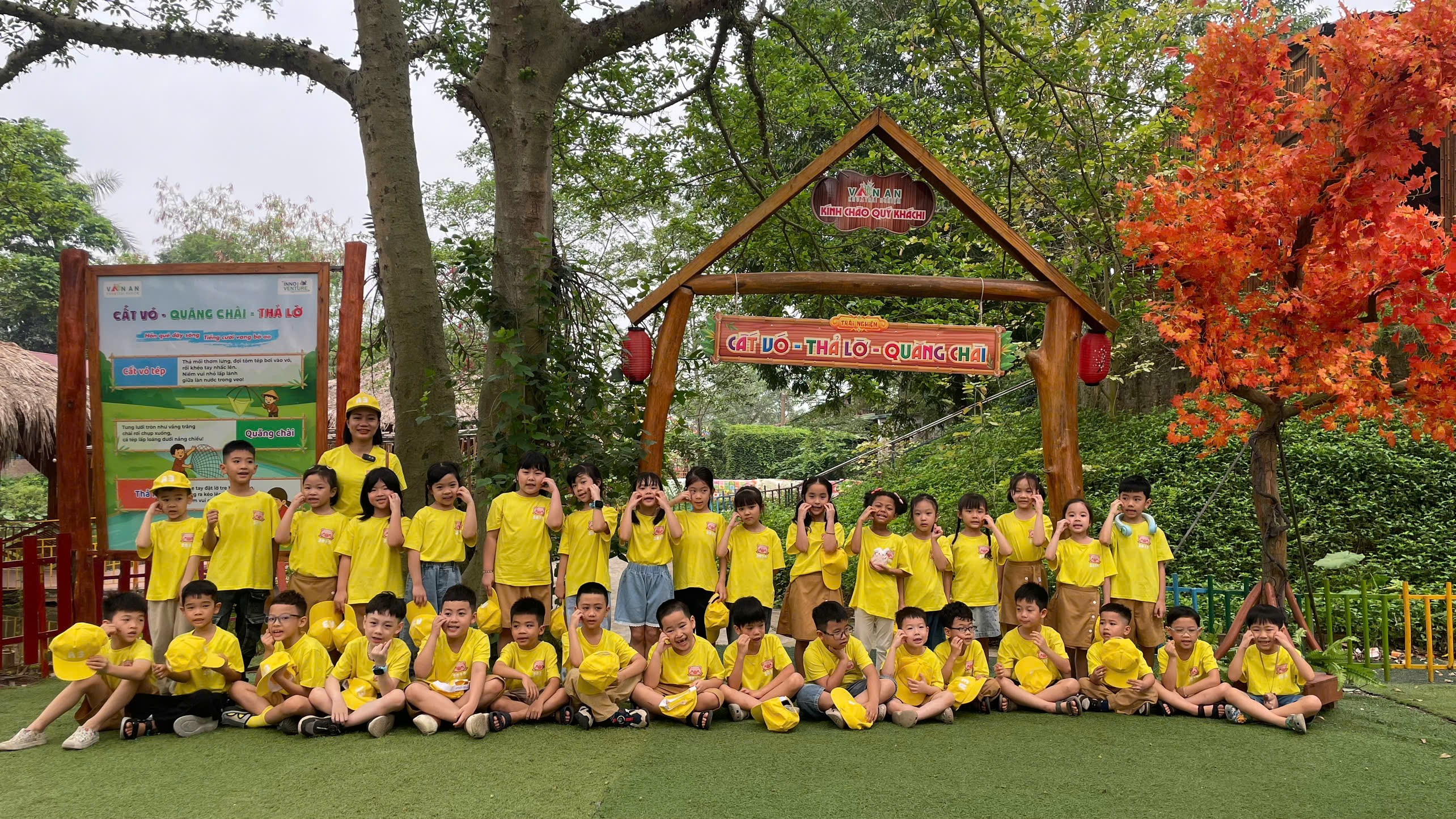 Ngay khi đặt chân đến đây, các con học sinh khối 1 đã vô cùng hào hứng trước không gian mở rộng lớn, nơi hơi thở của thiên nhiên hòa quyện trong từng khu trải nghiệm được thiết kế riêng biệt và gần gũi.