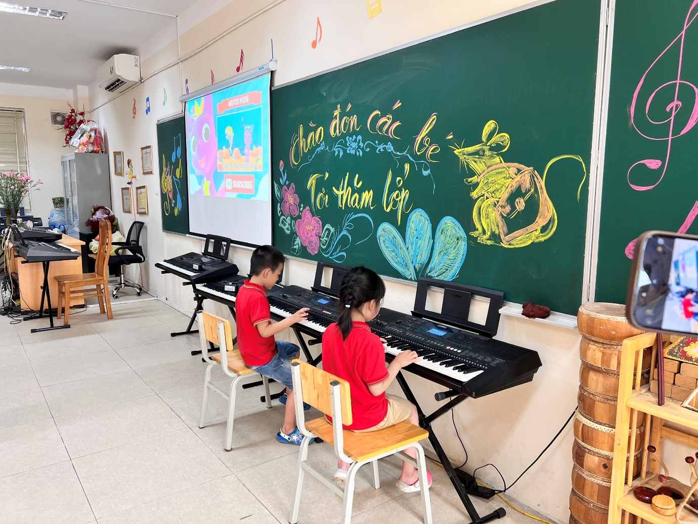 Bên cạnh đó, các hoạt động trải nghiệm như: tô màu, ghép tranh, làm quen chữ cái, đánh đàn, tham gia trò chơi vận động… đã mang lại cho các em những phút giây vui vẻ, bổ ích. Các trò chơi không chỉ giúp các bé phát triển tư duy mà còn rèn luyện sự mạnh dạn, tự tin khi tham gia các hoạt động tập thể.