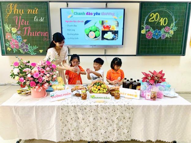 Hũ chanh đào mật ong ngọt ngào tặng mẹ nhân ngày Phụ nữ Việt Nam 20/10 của học sinh khối 1 trường Tiểu học Hoàng Hoa Thám