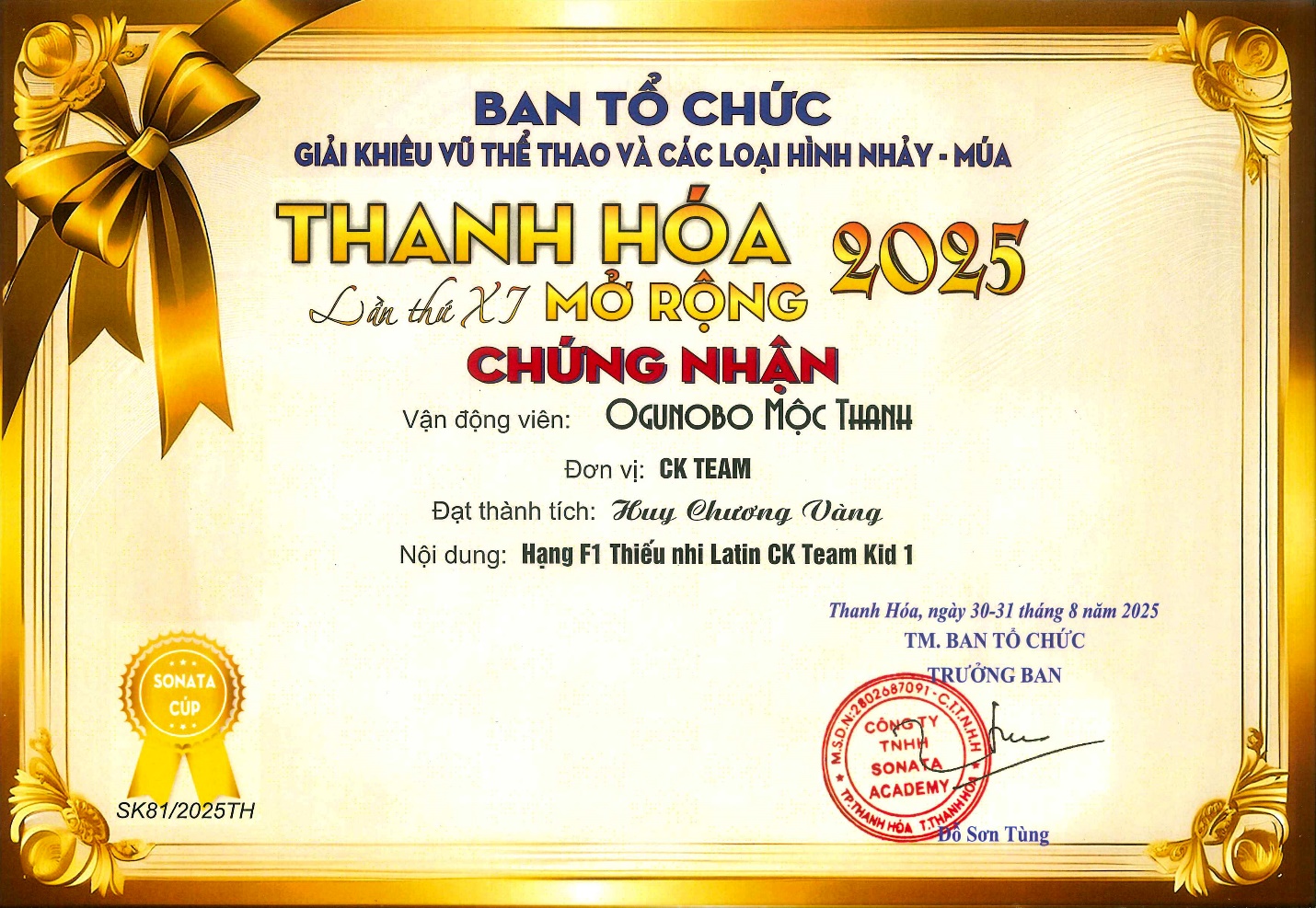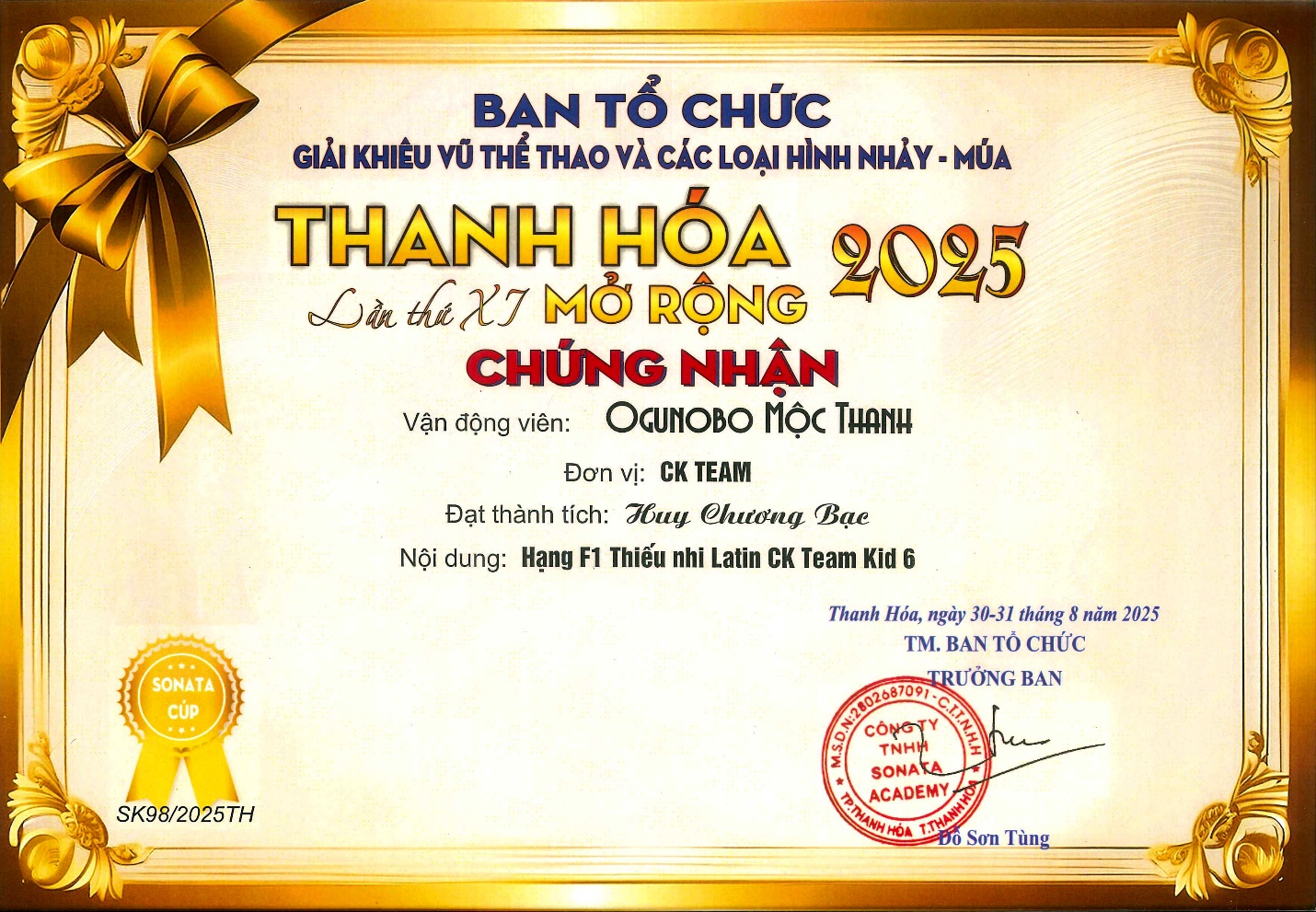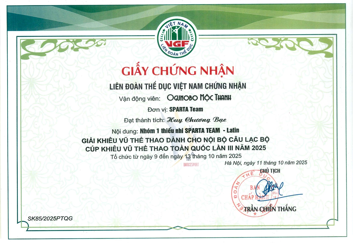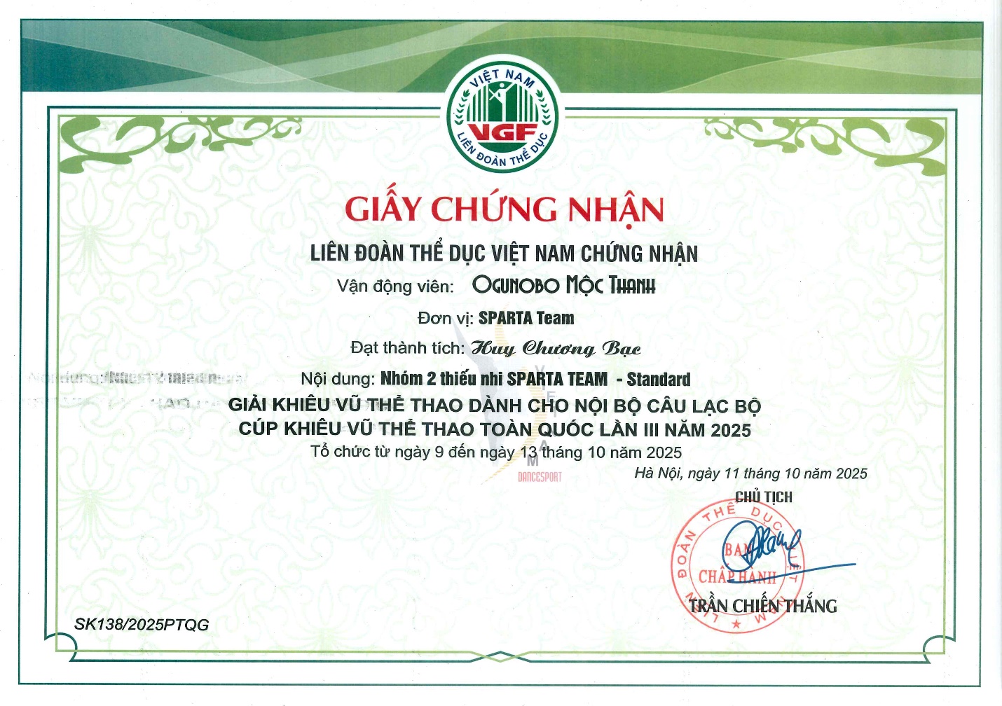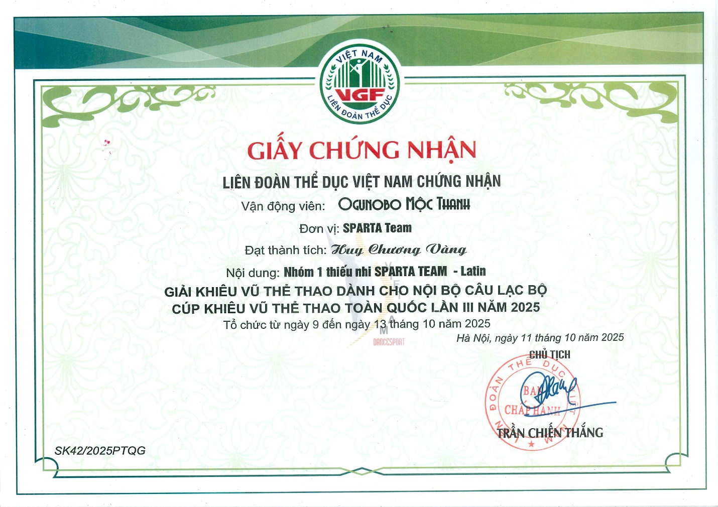 🥇 Huy chương Vàng tại Giải Khiêu vũ thể thao Thanh Hóa mở rộng 2025.