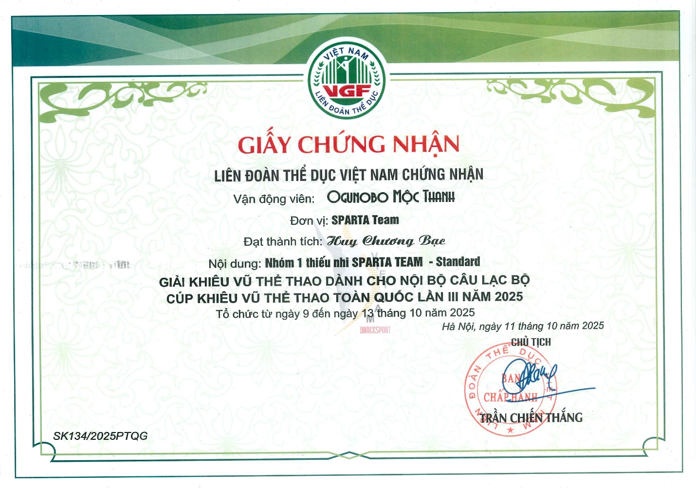 🥇 1 Huy chương Vàng, 3 Huy chương Bạc tại Giải Vô địch Quốc gia Khiêu vũ thể thao năm 2025.