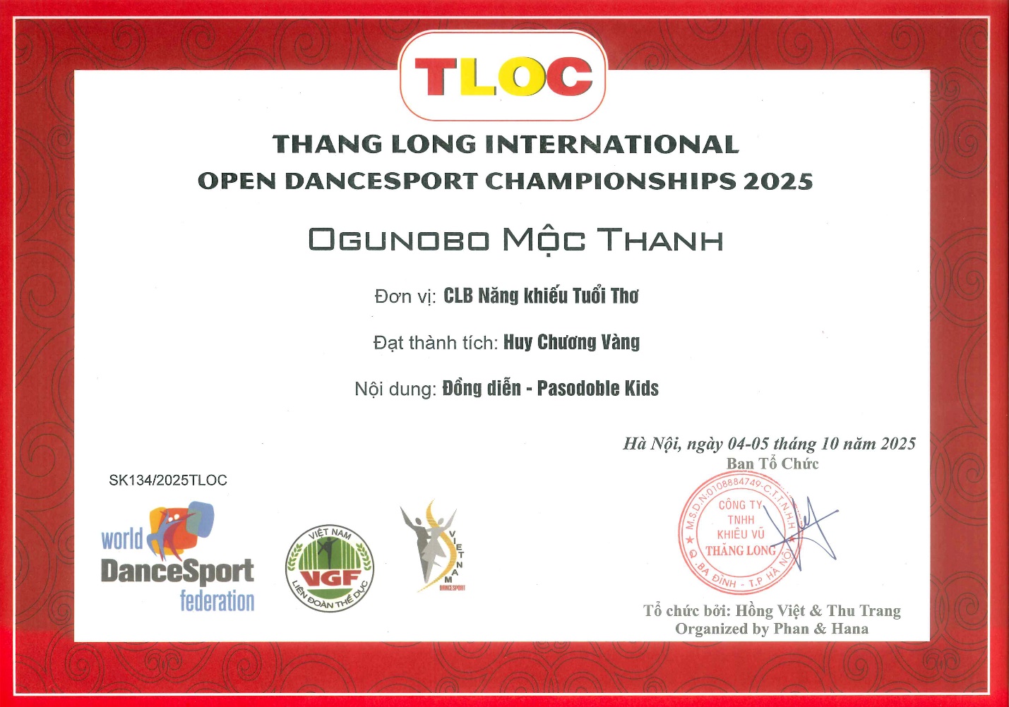 🥇 Huy chương Vàng đồng diễn Pasodoble Kids tại Thang Long International Open Dancesport Championships 2025.